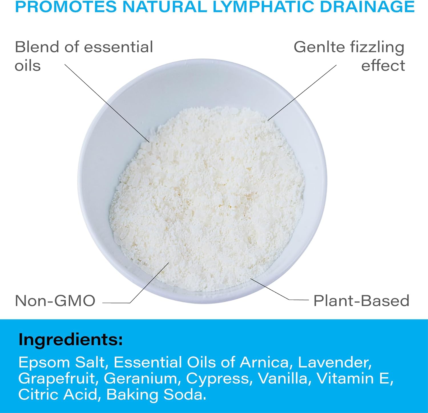 - BENEFITS: The Bruizex Lymphatic Drainage Bath Salts offer a multitude of benefits. As a full-body detox solution, it works wonders on muscle soreness lymphatic drainage all while being gentle on the skin. The salts leave your skin feeling smooth and silky after every bath. Perfect for a foot or full body soak, it provides a luxurious, fizzing, and bubbling bath experience, enhanced by an excellent scent that promotes a soothing and calming environment.