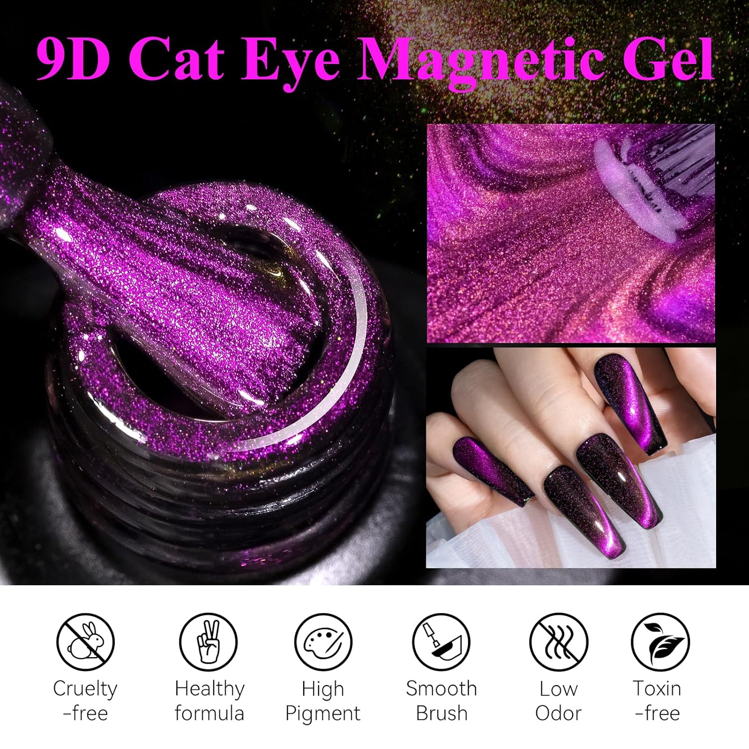 - Magic Galaxy Effect on Nails: Chameleon colors cat eye effect and holographic shimmer galaxy effect cateye nail gel brings you an amazing 9D cat eye effect on nails, to feel the gradient colors under different lights or angles.
