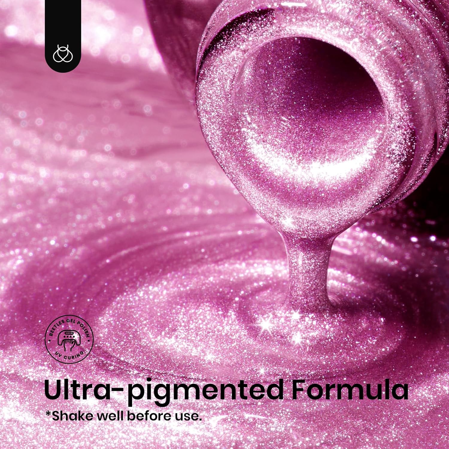Beetles Pink Cat Eye Gel Nail Polish - 15ml Pink Velvet Cat Eye Magnetic Glitter Gel Polish Soak Off UV Salon DIY French Nail Art Home Manicure Gift for Women