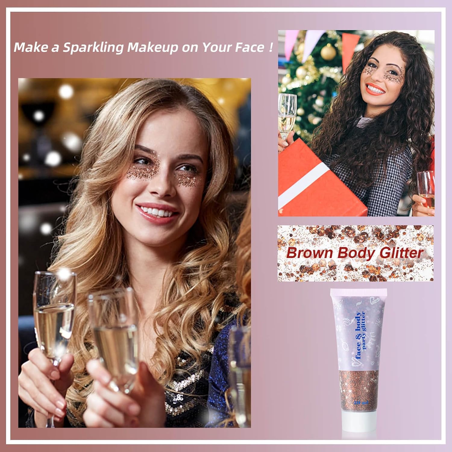 MEICOLY Brown Body Glitter,Deer Maroon Face Glitter Gel,Mermaid Sequins Halloween Glitter Face Paint,Chunky Glitter for Face Body Eye Lip Hair,Glitter Makeup for Women and Kids