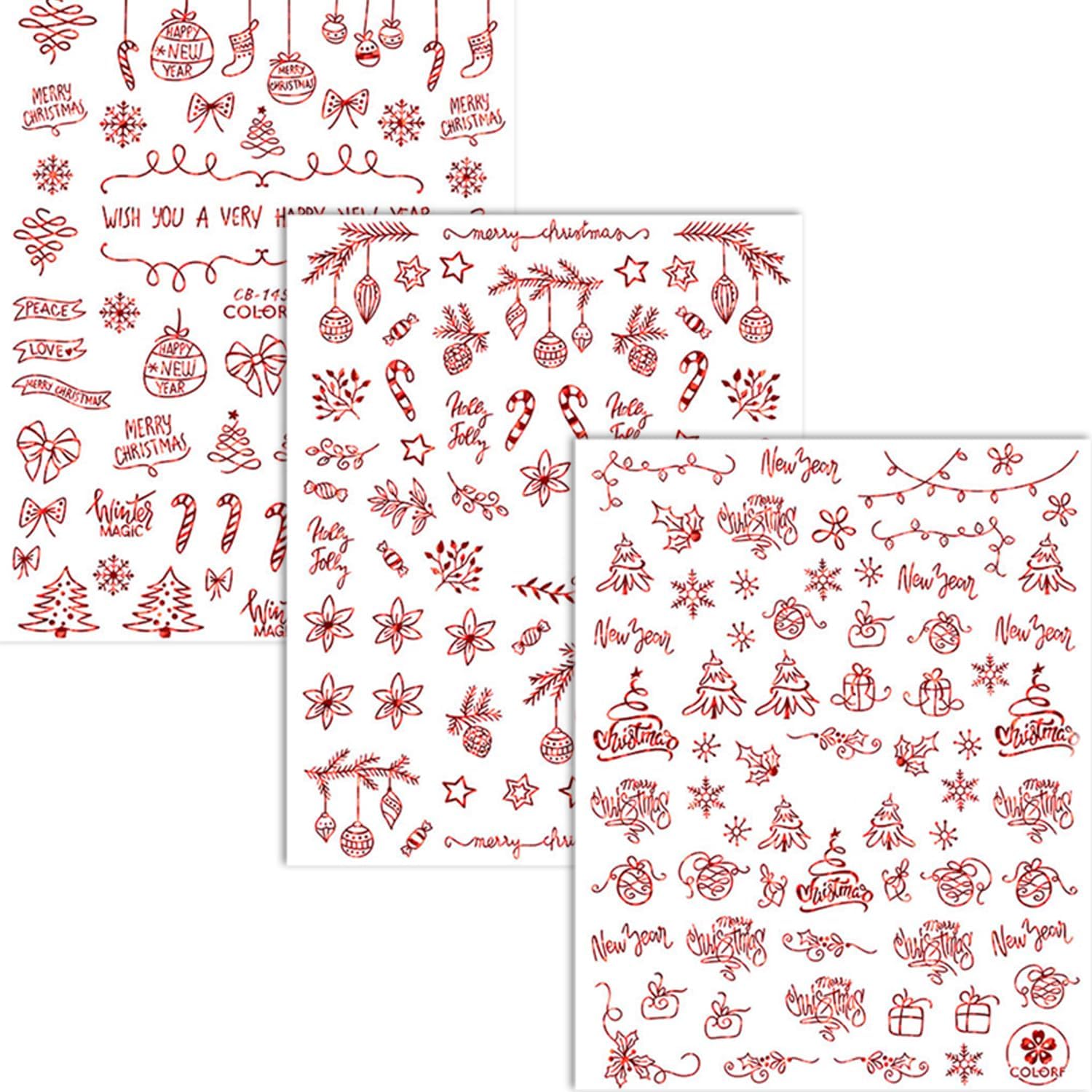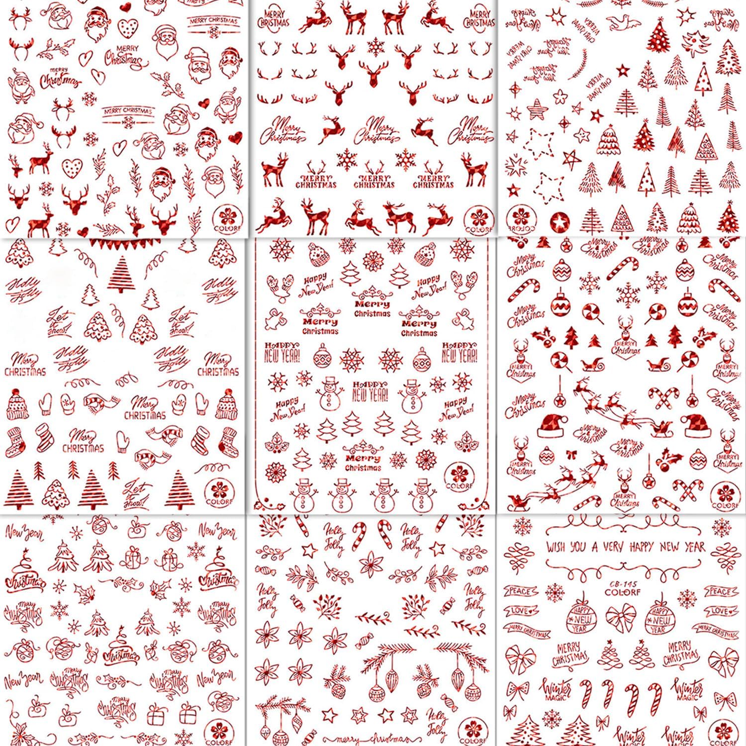 - Christmas Series: You will get 9 of sheets Red Xmas Snowflakes nail art stickers, it contains a variety of snowman, trees, snow, and butterfly and you can design bold and fashionable nail art.Which can offer you multiple choices .which can satisfy your rich imagination of nail DIY and create your own style.