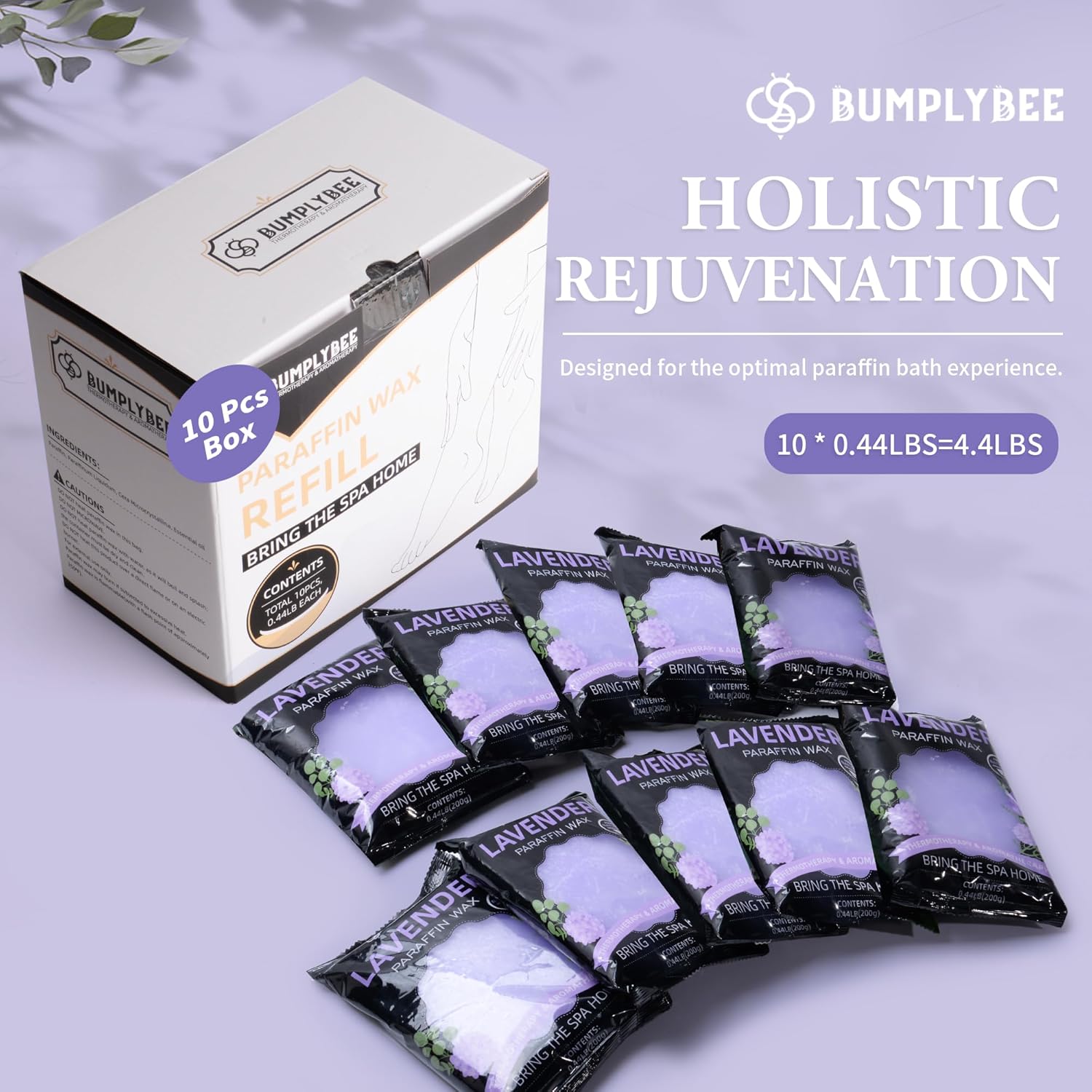 - Natural Aroma & Rapid Melting Efficiency: Immerse in the calming ambiance of our BUMPLYBEE Lavender Paraffin Wax, infused with natural lavender essential oil for a relaxing experience; Designed for paraffin wax bath enthusiasts, our wax melts quickly and evenly, saving time and ensuring a swift, rejuvenating self-care session; Ideal for paraffin wax for hand and feet, it offers a serene spa-like experience at home