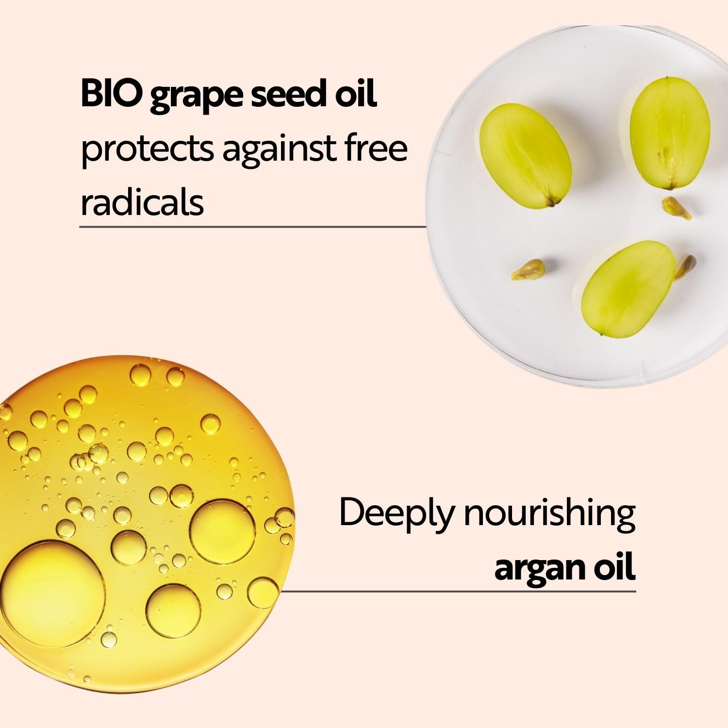 - β GRAPE SEED OIL & ELDERFLOWER EXTRACT provide extra smoothness and soothe the skin. The complexion appears more radiant and fresh, with a well-cared-for, natural tint, enhancing white beauty.