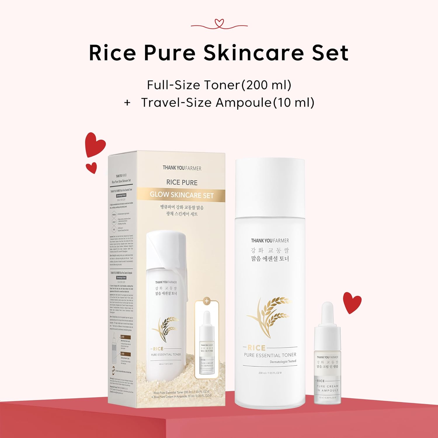 THANKYOU FARMER Rice Pure Skincare Set, Full Size Toner(7.03 fl oz) + Mini Size Ampoule(0.35 fl oz) Korean Skincare Set, Glass Skin