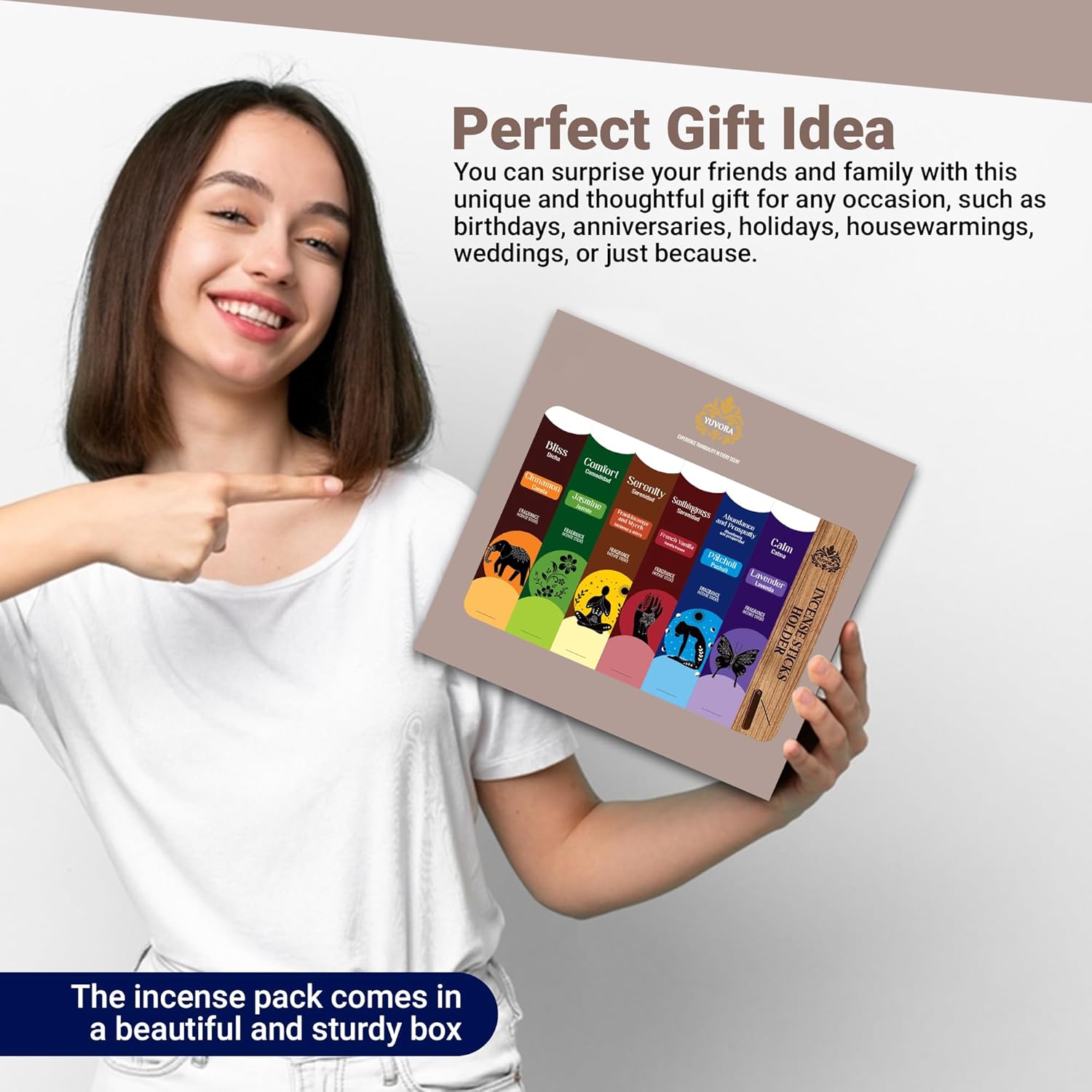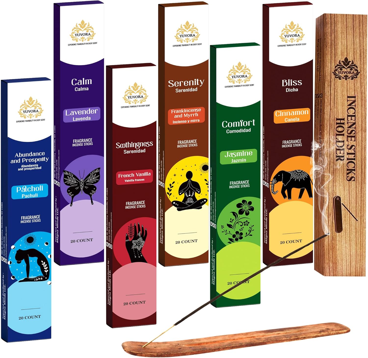 - Includes Free Wooden Holder – Yuvora incense sticks natural set includes a durable wooden incense holder designed to catch ash and complement any décor. No need for separate purchases—enjoy a hassle-free burning experience!