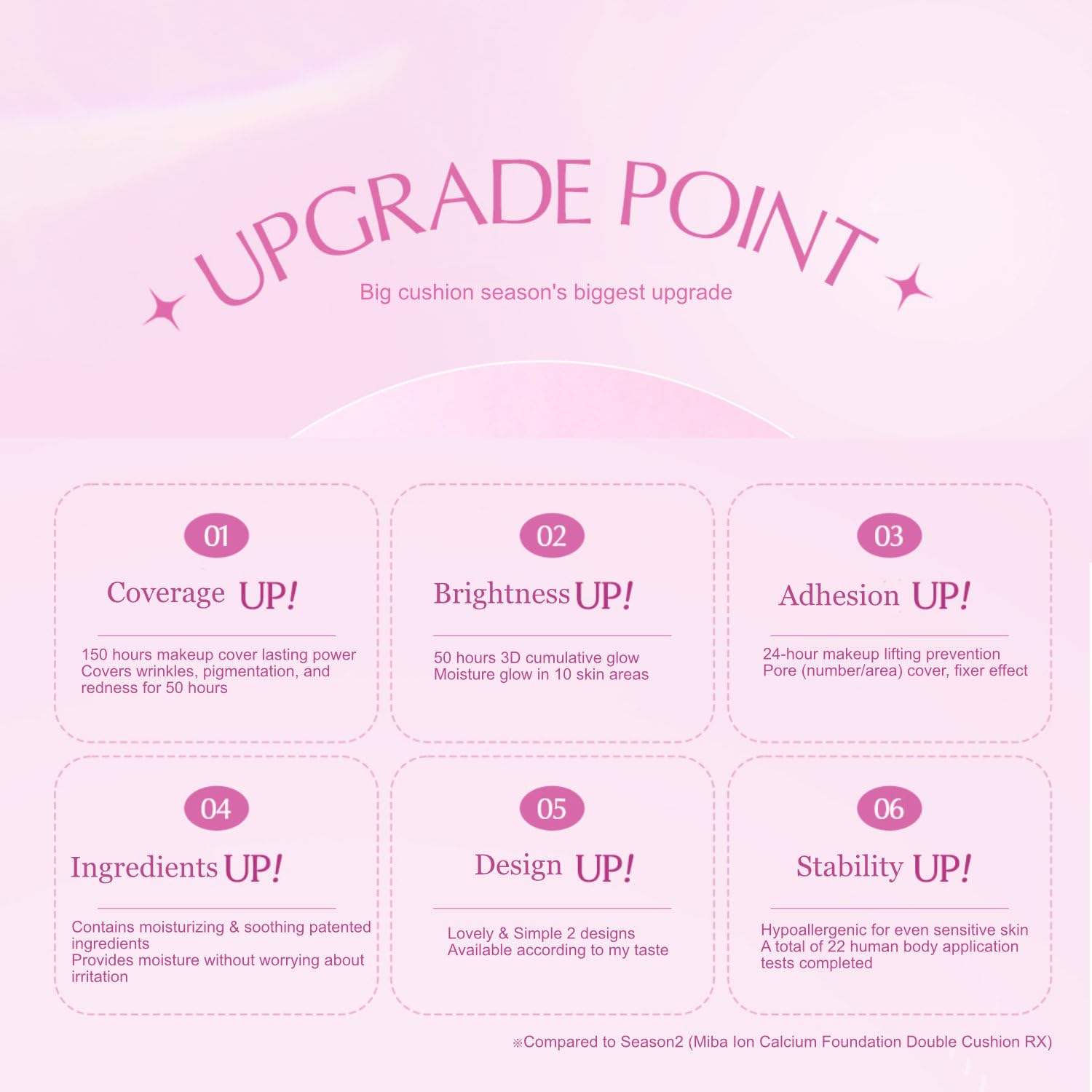 MIBA Ion Calcium Foundation Double Cushion Glow 25 g / 0.88 oz Big Cushion SEASON 3. Long Lasting Cover Effect. Moisture glow. Skin tightening relief. Smooth adhesion. (Luxury #21 Rosy Ivory)
