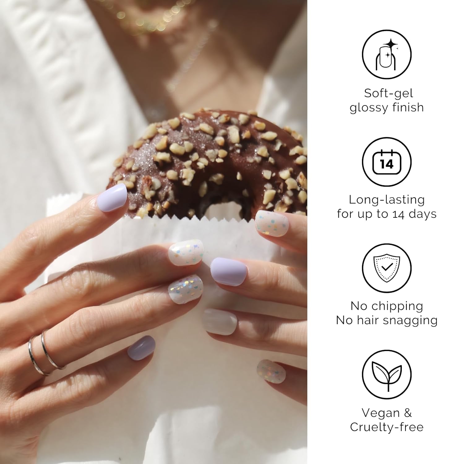 NAILOG Semi Cured Gel Nail Strips 34 pcs| Buy 2 Get 1 UV Lamp | Long Lasting Nail Polish Sticker Wraps with Glossy Gel Finish, Innocent