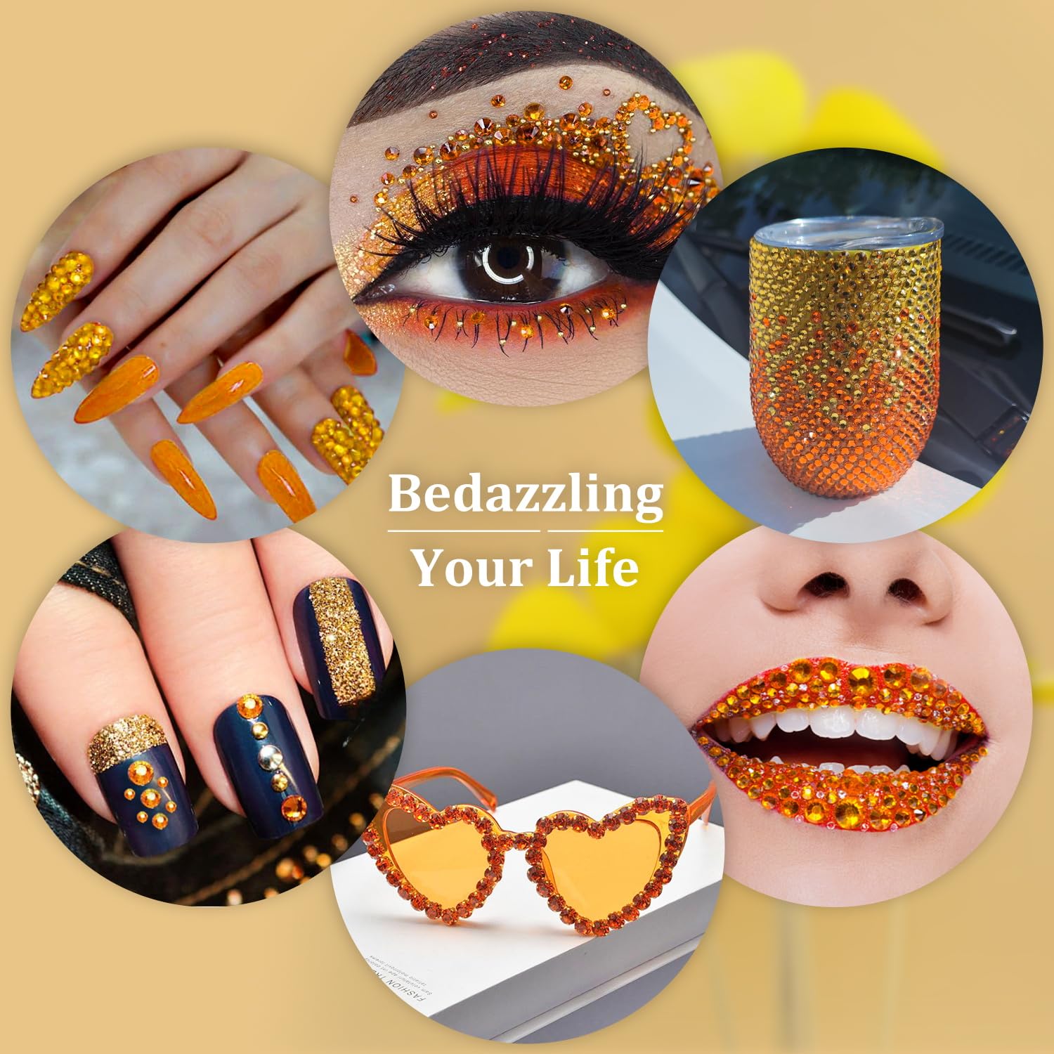 Resin Rhinestones for Crafting, 1 Box Orange Multi Sizes Flatback Bedazzling Crystals for Crafts Nail Art Decoration, Non Hotfix Gems Charms for Tumbler Shoes Clothing Fabric Face Makeup