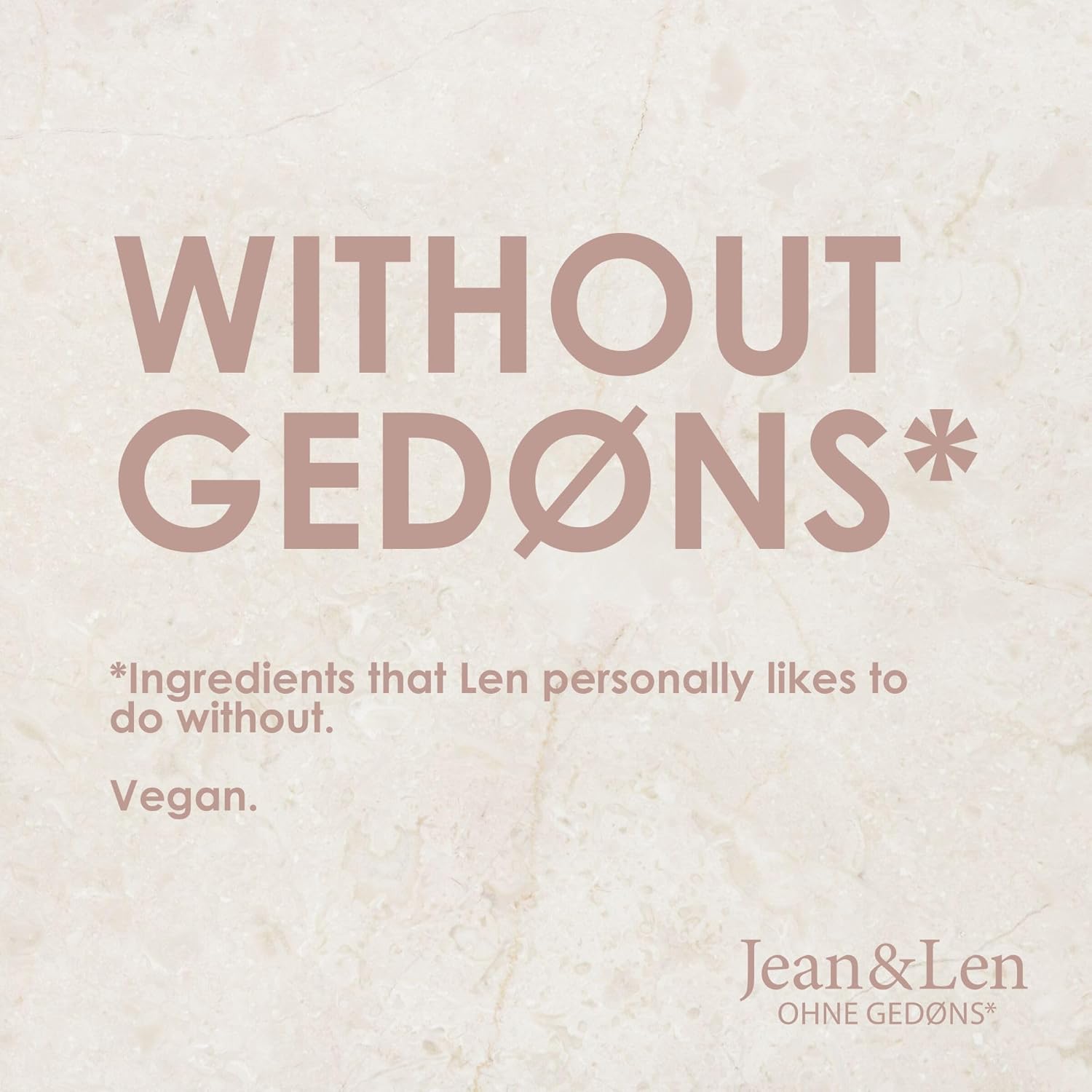 - WITHOUT GEDØNS*: For us, Gedøns* are things and especially ingredients, that our founder Len wants to avoid in our products. These include parabens, silicones and animal ingredients. We do not claim that these ingredients are harmful or bad. We simply don't want certain substances in our products because we know many of you don't want them either.
