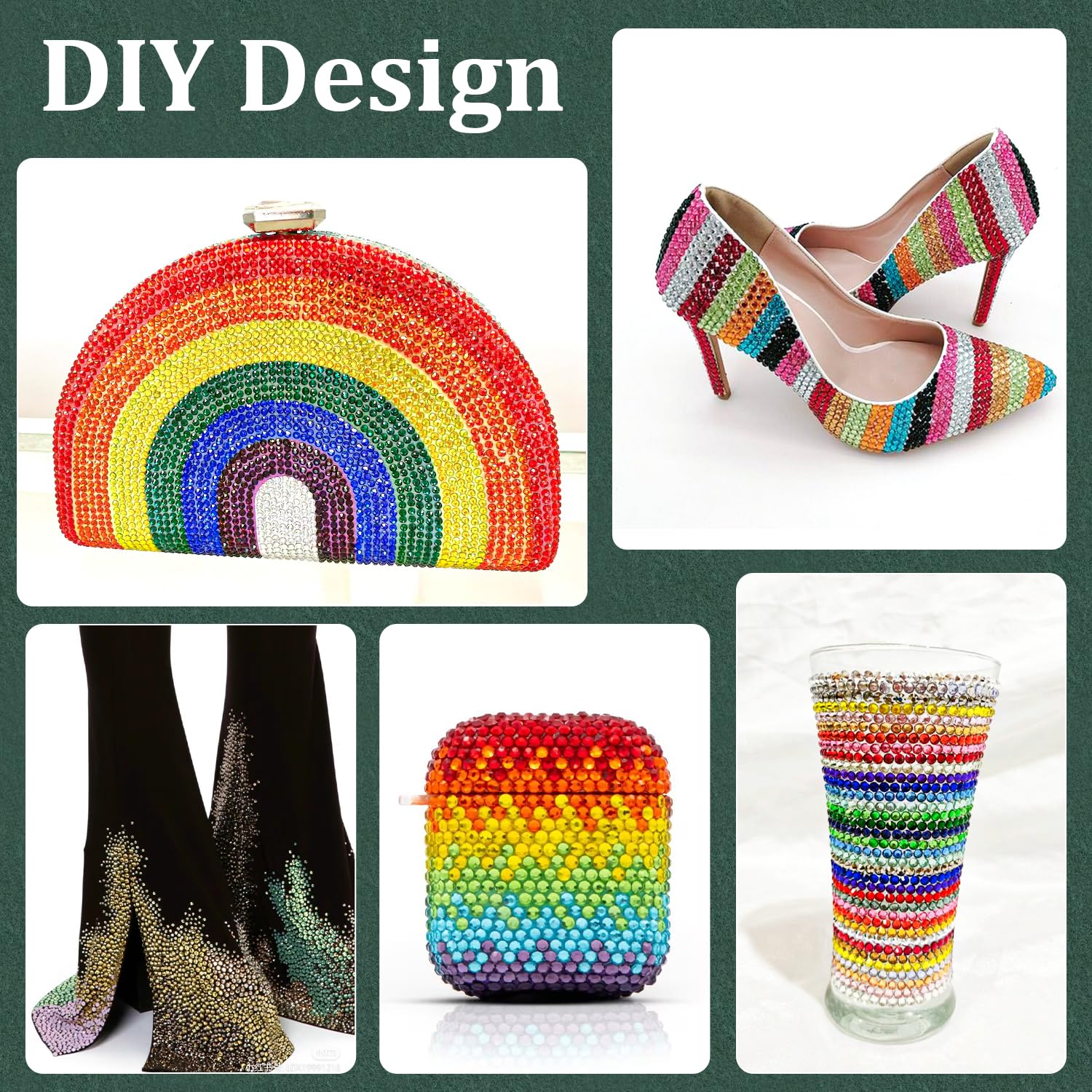 - 🌈WIDE APPLICATION -- These sparkling iridescent resin crystals are perfect for creating dazzling looks. Use them for bedazzling DIY crafts like shoes, tumblers, mugs, bottles, phone cases, popsockets, scrapbooks, photo frames, diamond paintings, greeting cards, bags, glasses, guitars, keychains, hats, masks, hair clips, bracelets, wristbands, clothing, wedding dresses, and more. Apply it to what you want to bling!
