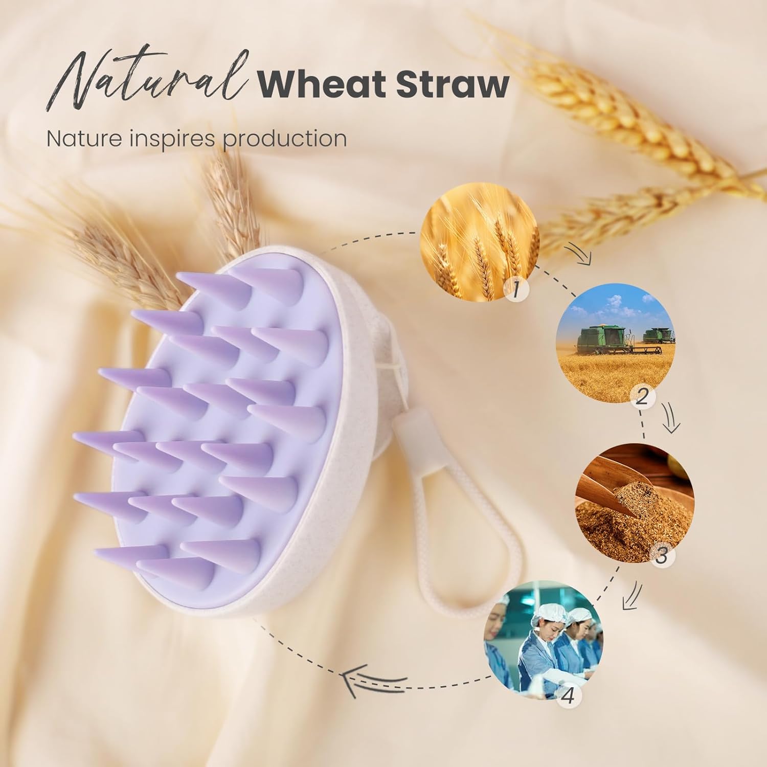- Wheat Straw Scalp Scrubber: AIMIKE hair scalp massager shampoo brush is made of natural wheat straw with soft silicone bristles. Unlike the traditional hair shampoo brush, it is natural protector for your scalp and planet