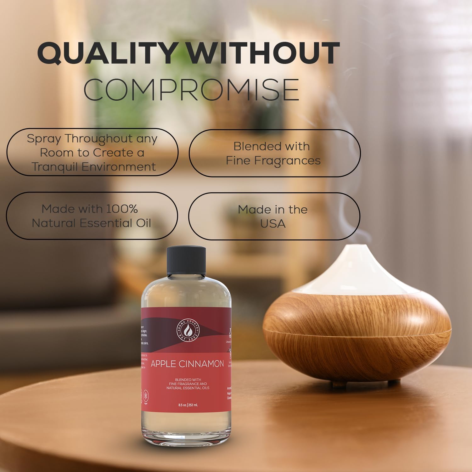 Aroma Country Apple Cinnamon Diffuser Oil - Luxury Essential Oils for Diffuser Refill & Air Freshener Room Spray - Long-Lasting & Natural Home Fragrance, Apple Cinnamon Scented Oil (8.5 Fl. oz)