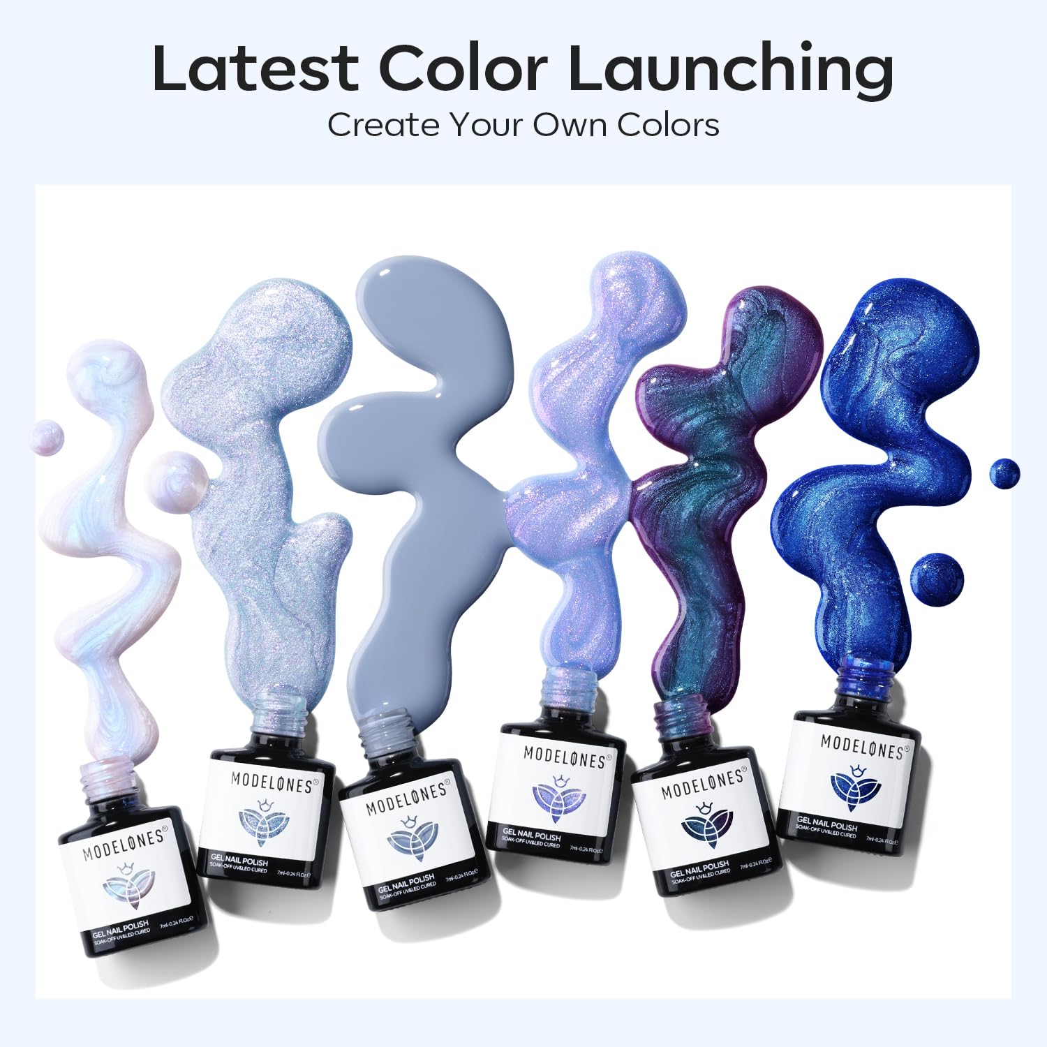 - [ Nail-friendly Formula ]: Modelones light blue gel nail polish set is composed of 11 non-toxic and vegetarian. Rich in natural resin and No irritating ingredients, making your nail bed safer, and preventing nail chipping, breakage, and yellowing