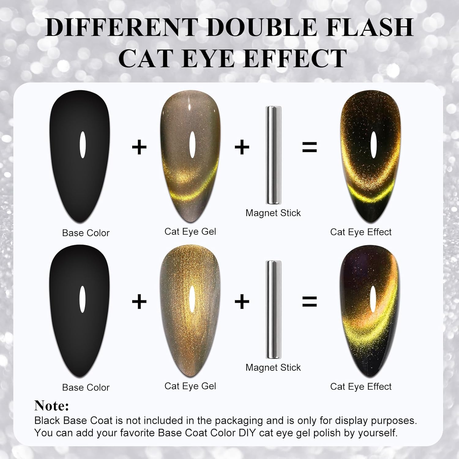 - Tip -You need to use some skills to apply this 9D cat eye gel nail polish, as for beginners, we suggest you can learn more about from videos, the practice can get a satisfying effect.Apply a base coat, two layers of gel polish, and a top coat for best results