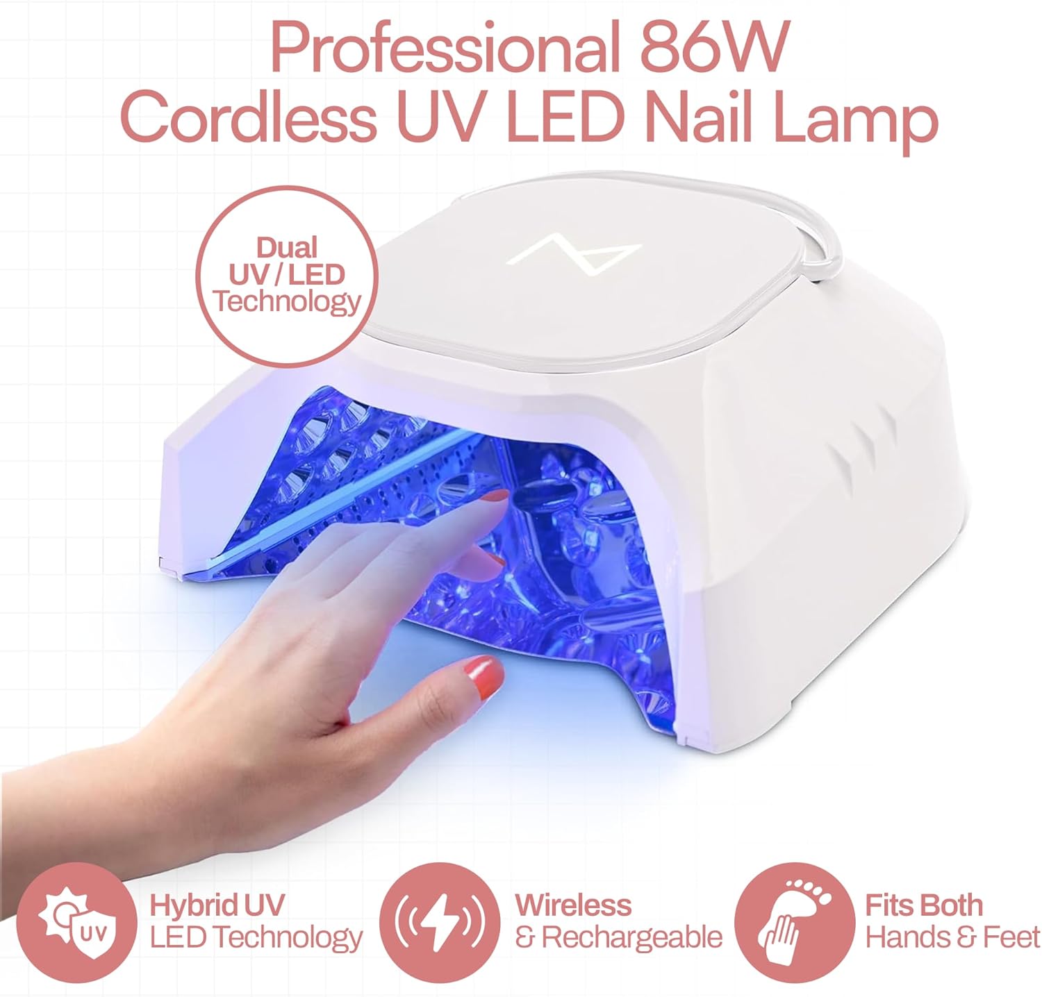 M - GlowPro Professional Hybrid 86W Wireless Rechargeable UV LED Nail Curing Lamp Cordless Nail Dryer for Gel Nails, Manicure, Pedicure (Black)