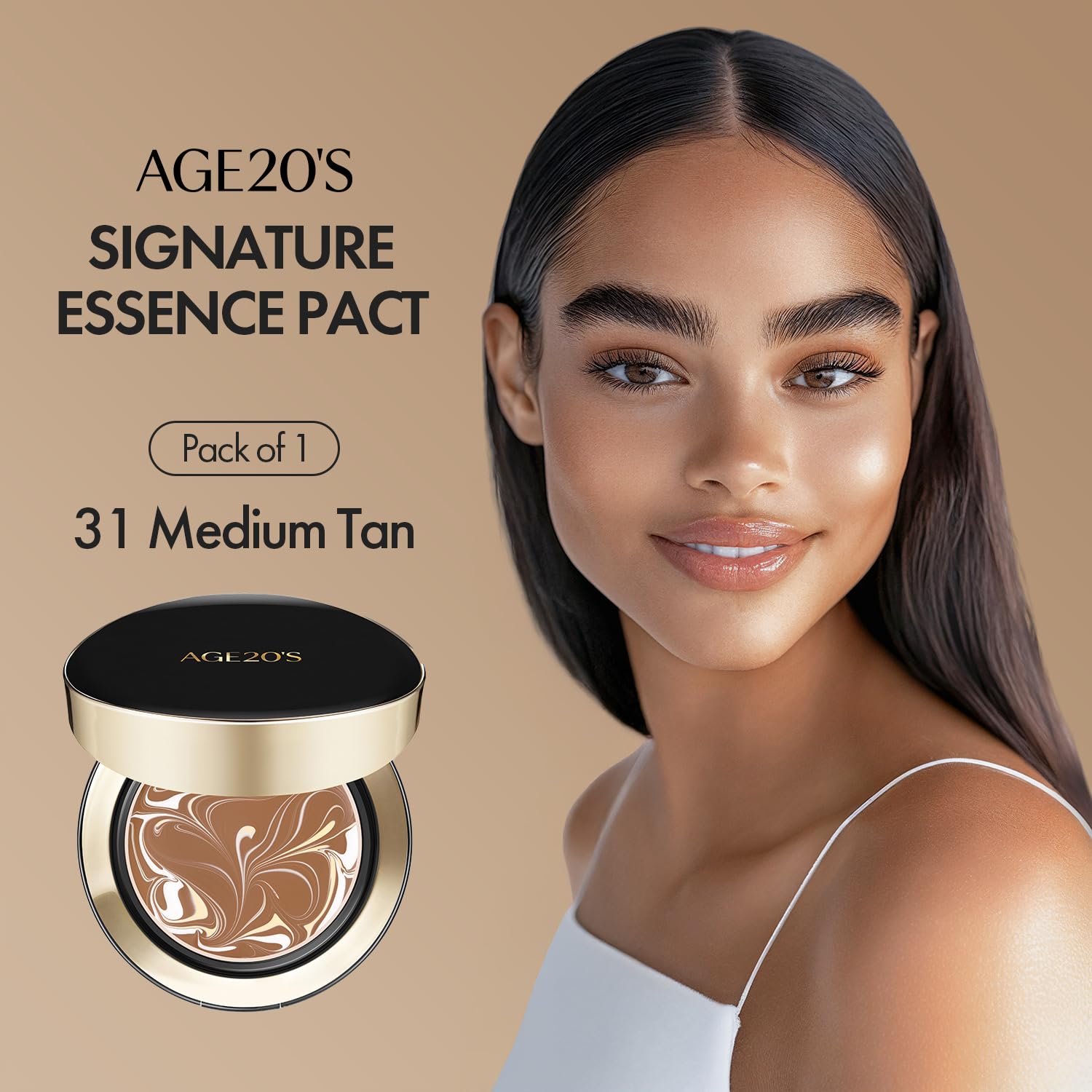 AGE20'S Signature Essence Pact SPF 50+ | Pack of 1 | 31 Medium Tan | Cream Foundation, Dewy Finish, Natural Coverage | Korean Cushion Foundation