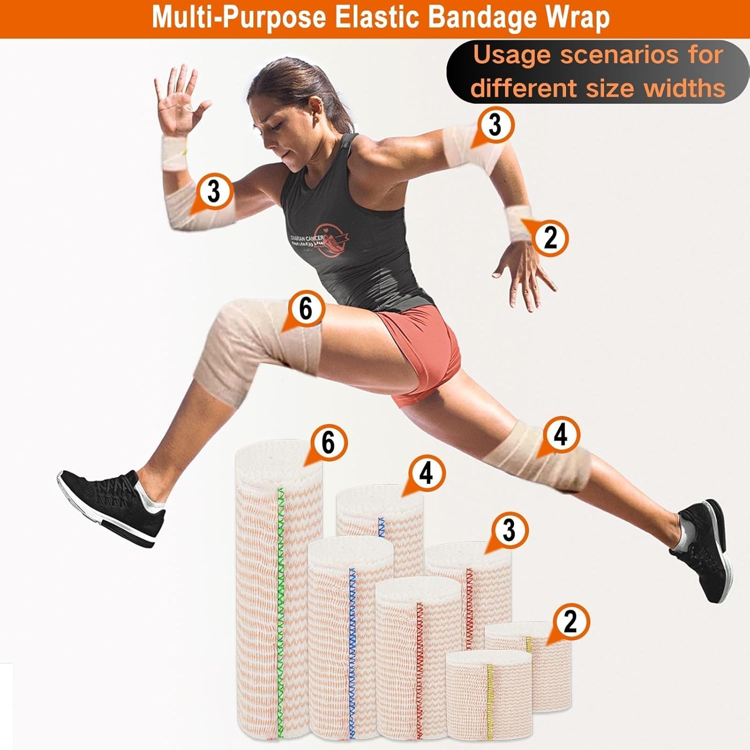 - Wide range of uses: The versatile nature of our compression bandages makes them Can be used on Arms, legs, waist and more Helps relieve general aches and pains, sprains, strains and swelling, providing supportive compression and firm pressure on your injured area
