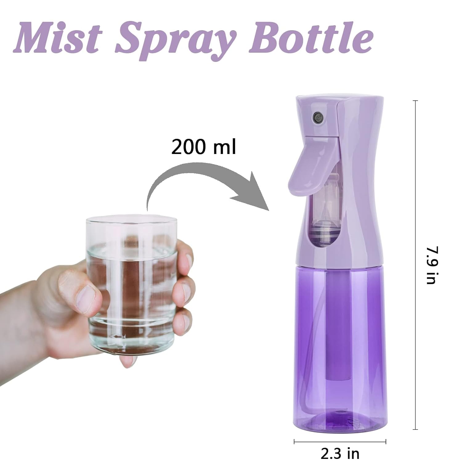Spray Bottle for Hair (6.8OZ /200ML) Continuous Ultra Fine Mist Sprayer for Hair, Salons, Barber, Plants, Skin Care, Cleaning 1 Pack CLEAR PURPLE