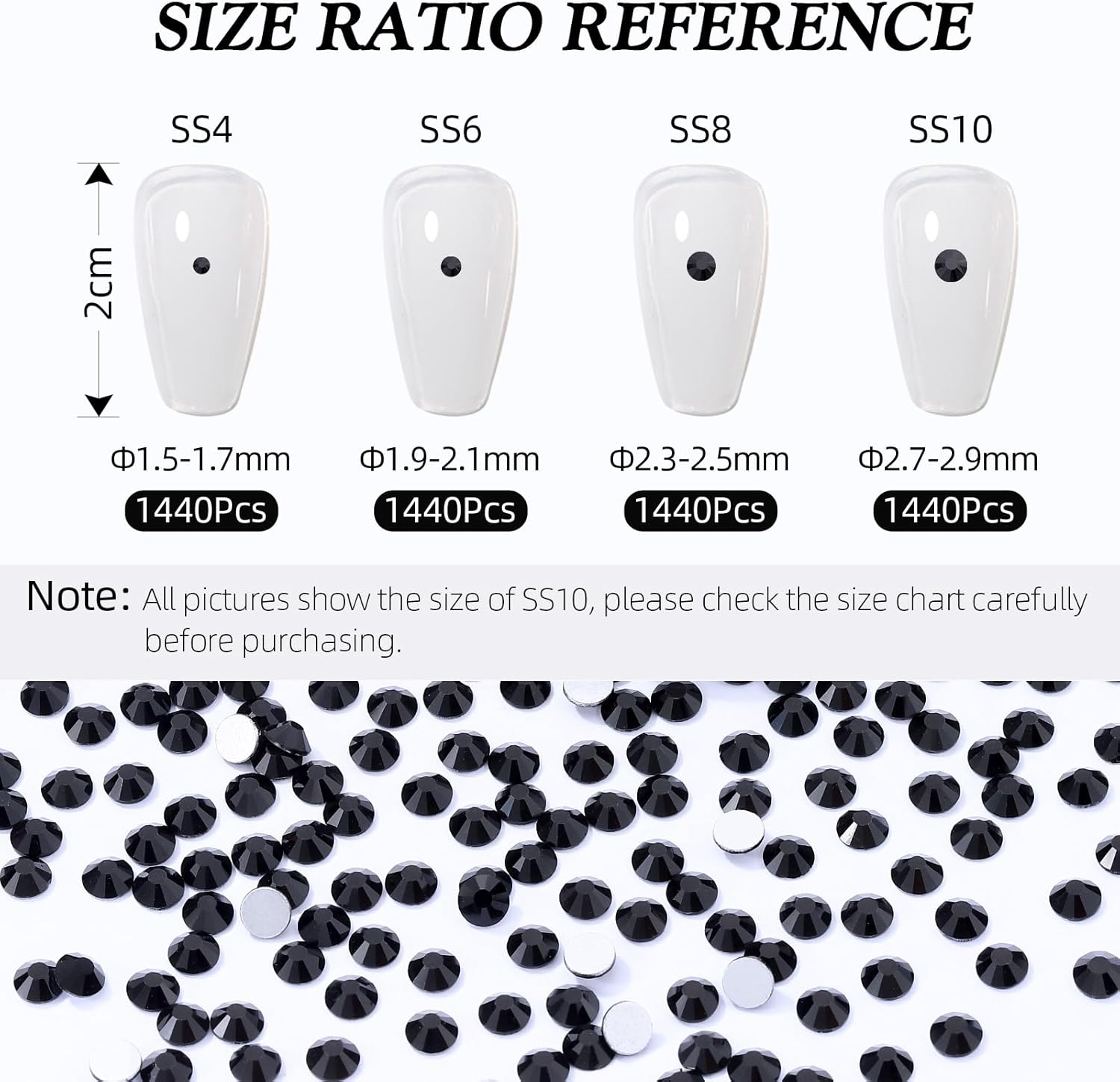 - Product Packaging: Bags packaging SS8 2.3~2.5 MM - 1440 Pcs black flatback rhinestones