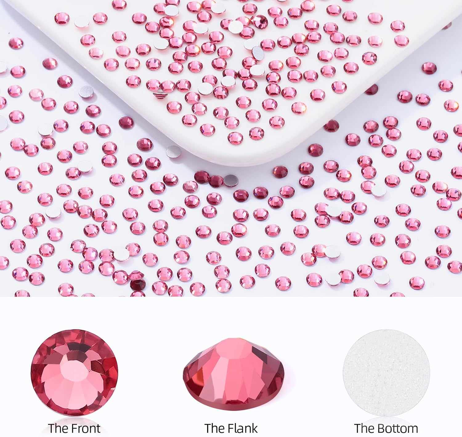 Rose Flatback Rhinestones, Glass Rhinestones for Nail Art and Craft, Glue Fix, Loose Crystal Gemstones(Rose, SS8, 1440pcs, 2.3-2.5mm)