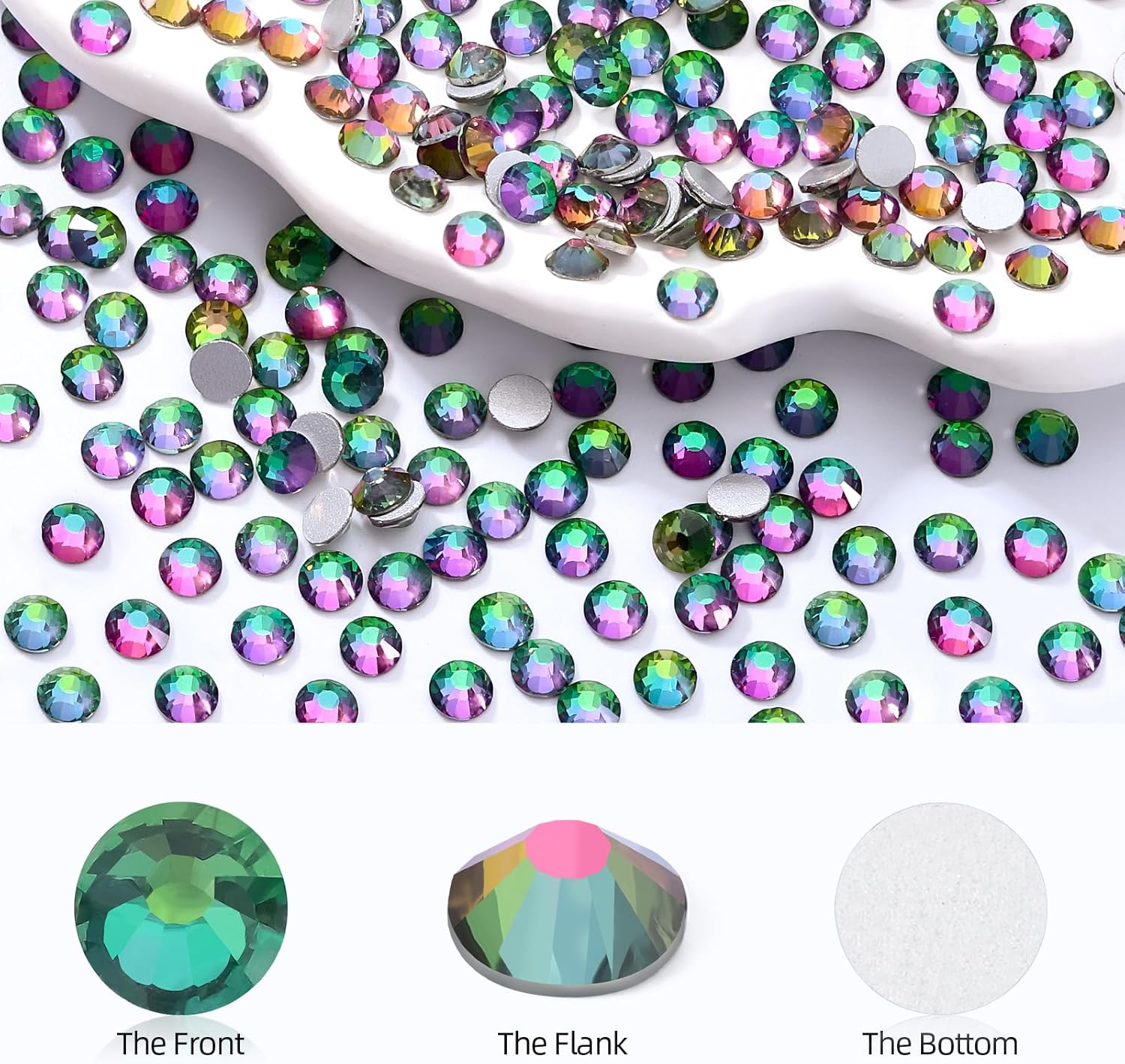 Green Volcano Flatback Rhinestones, Glass Rhinestones for Nail Art and Craft, Glue Fix, Loose Crystal Gemstones(Green Volcano, SS12, 1440pcs, 2.9-3.0mm)