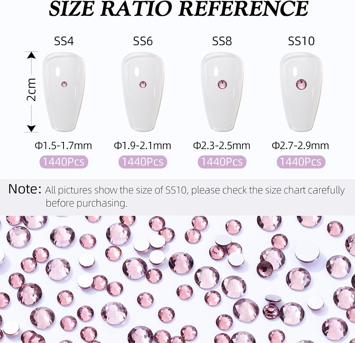 Light Amethyst Flatback Rhinestones, Glass Rhinestones for Nail Art and Craft, Glue Fix, Loose Crystal Gemstones(Lt.Amethyst, SS10, 1440pcs, 2.7-2.8mm)