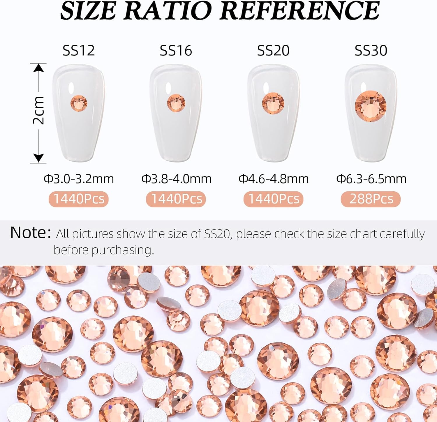 - Product Packaging: Bags packaging SS20 4.6~4.8 MM - 1440 Pcs champagne flatback rhinestones