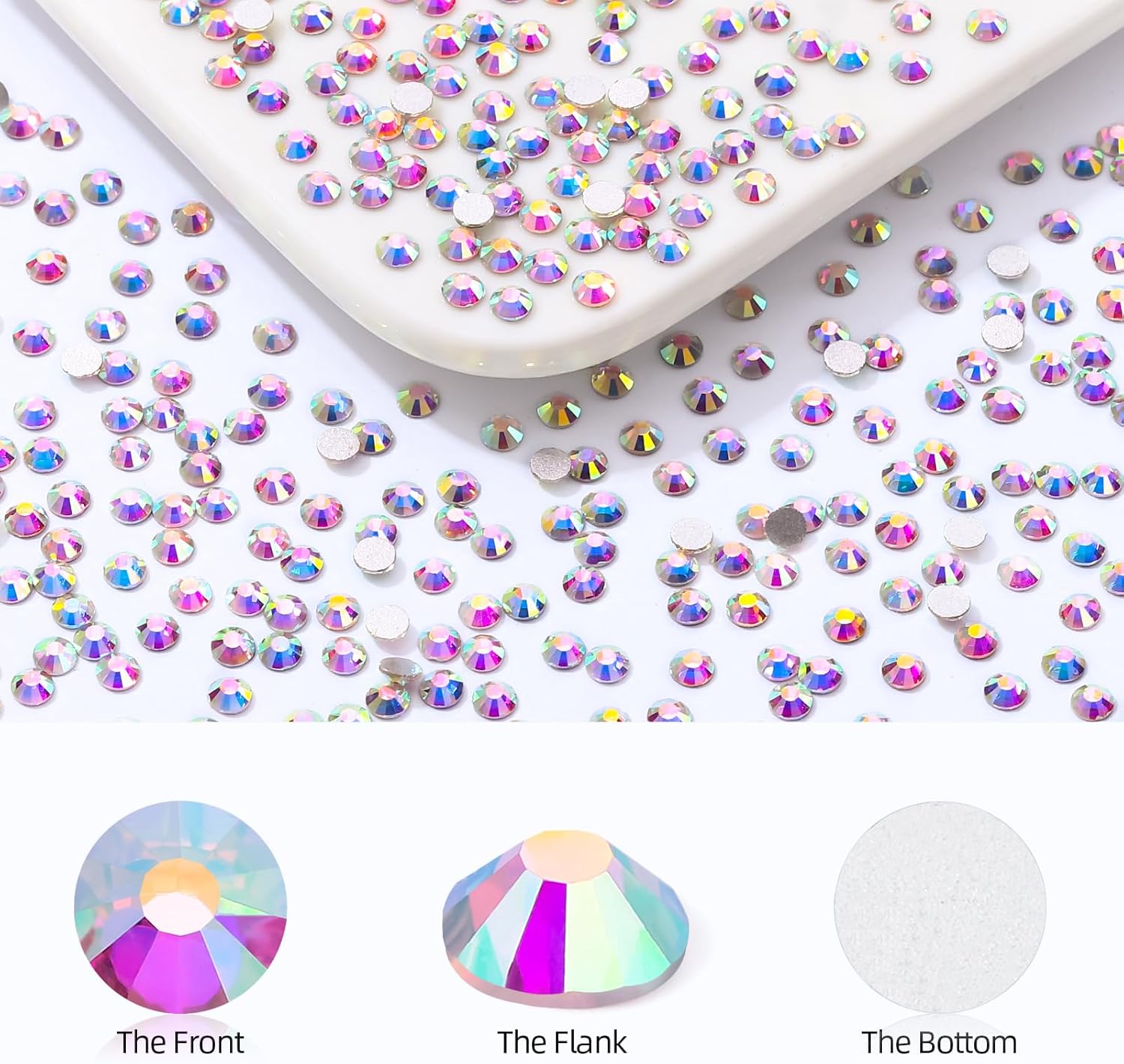 Crystal AB Flatback Rhinestones, Glass Rhinestones for Nail Art and Craft, Glue Fix, Loose Crystal Gemstones(Crystal AB, SS4, 1440pcs, 1.5-1.7mm)
