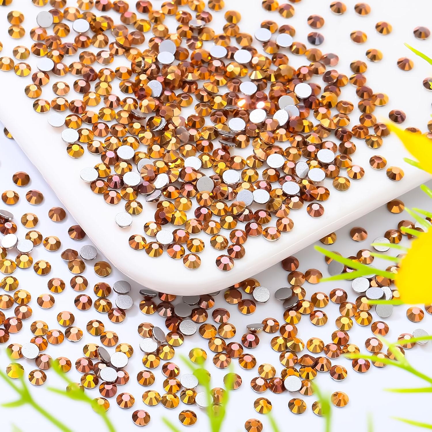 Gold Flatback Rhinestones, Glass Rhinestones for Nail Art and Craft, Glue Fix, Loose Crystal Gemstones(Gold, SS4, 1440pcs, 1.5-1.7mm)