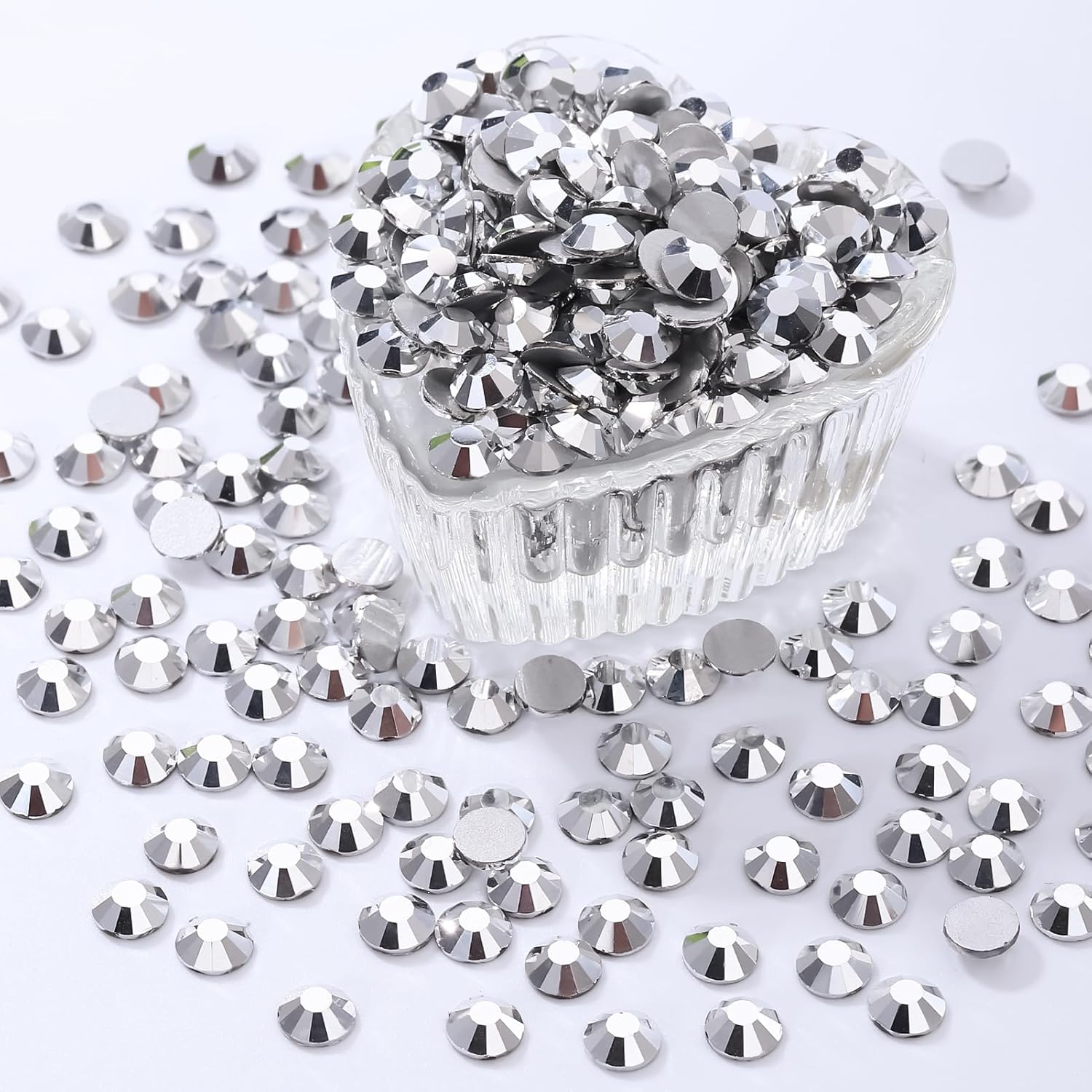 Silver Flatback Rhinestones, Glass Rhinestones for Nail Art and Craft, Glue Fix, Loose Crystal Gemstones(Silver, SS12, 1440pcs, 2.9-3.0mm)