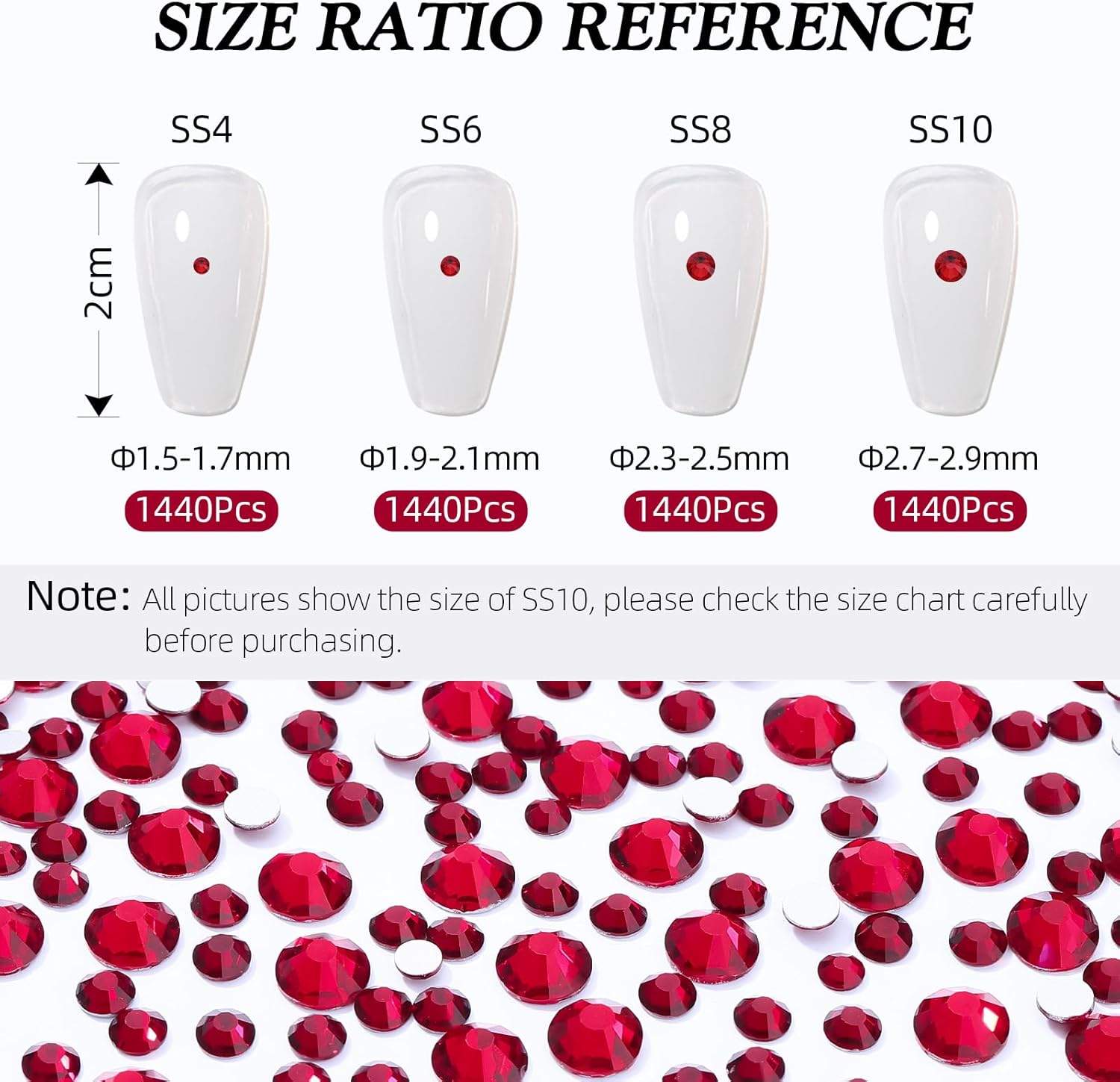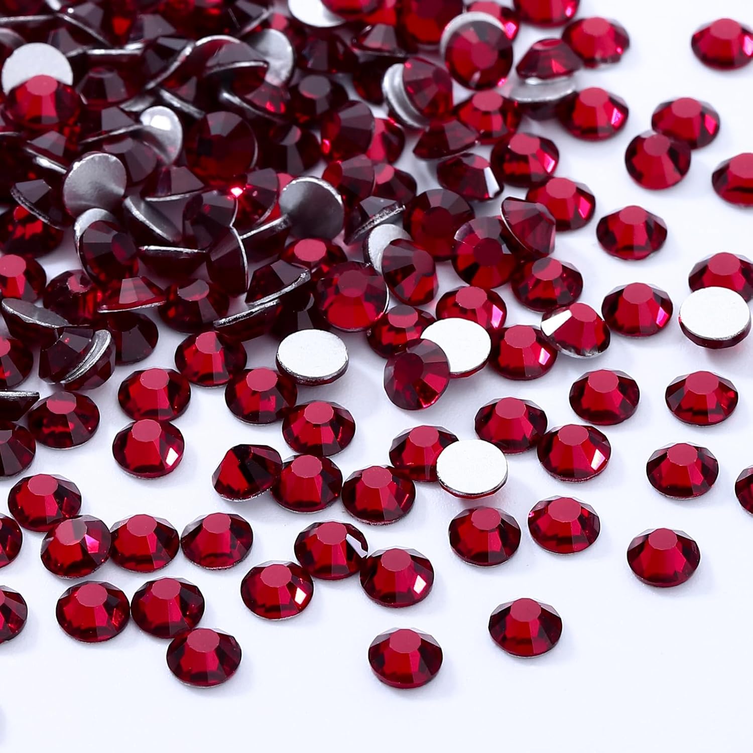 Siam Flatback Rhinestones, Glass Rhinestones for Nail Art and Craft, Glue Fix, Loose Crystal Gemstones(Siam, SS8, 1440pcs, 2.3-2.5mm)