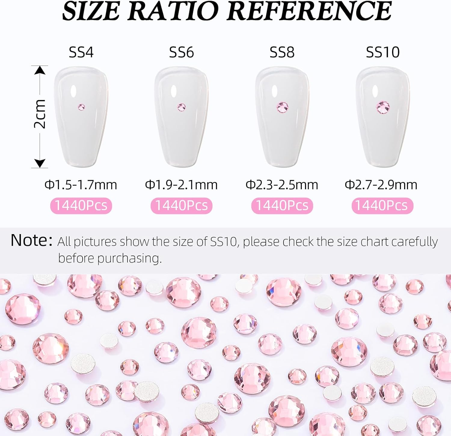 Pink Flatback Rhinestones, Glass Rhinestones for Nail Art and Craft, Glue Fix, Loose Crystal Gemstones(Pink, SS8, 1440pcs, 2.3-2.5mm)