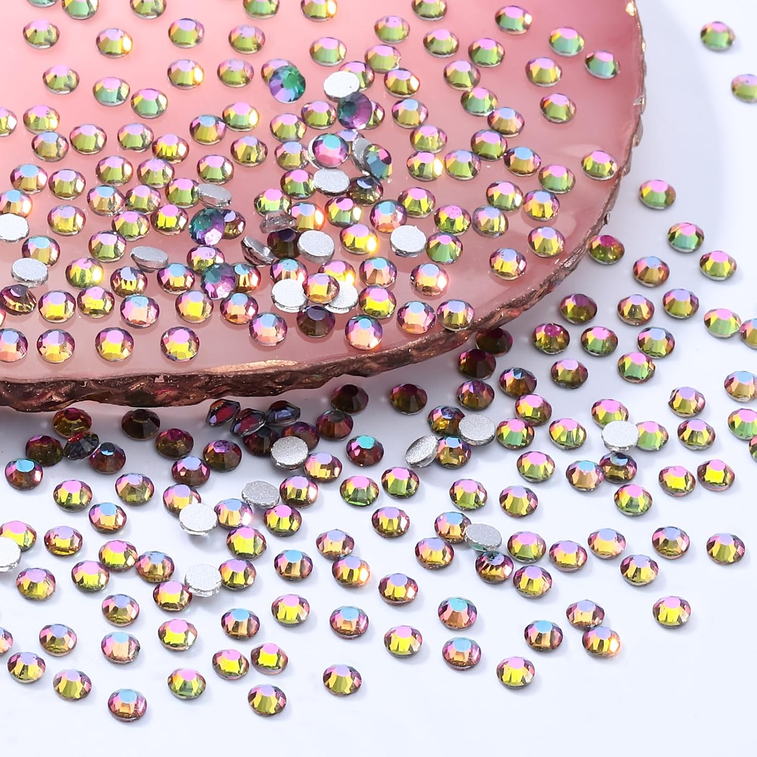 Green Volcano Flatback Rhinestones, Glass Rhinestones for Nail Art and Craft, Glue Fix, Loose Crystal Gemstones(Green Volcano, SS6, 1440pcs, 1.9-2.0mm)