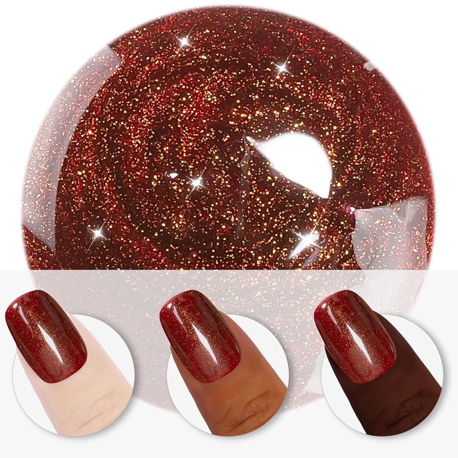 YTD Likomey Glitter Gel Nail Polish,15ml Burgundy Glitter Fall Winter Dark Red Shimmer Shiny Sparkly Salon Home DIY Manicure UV Color Varnish,SF400