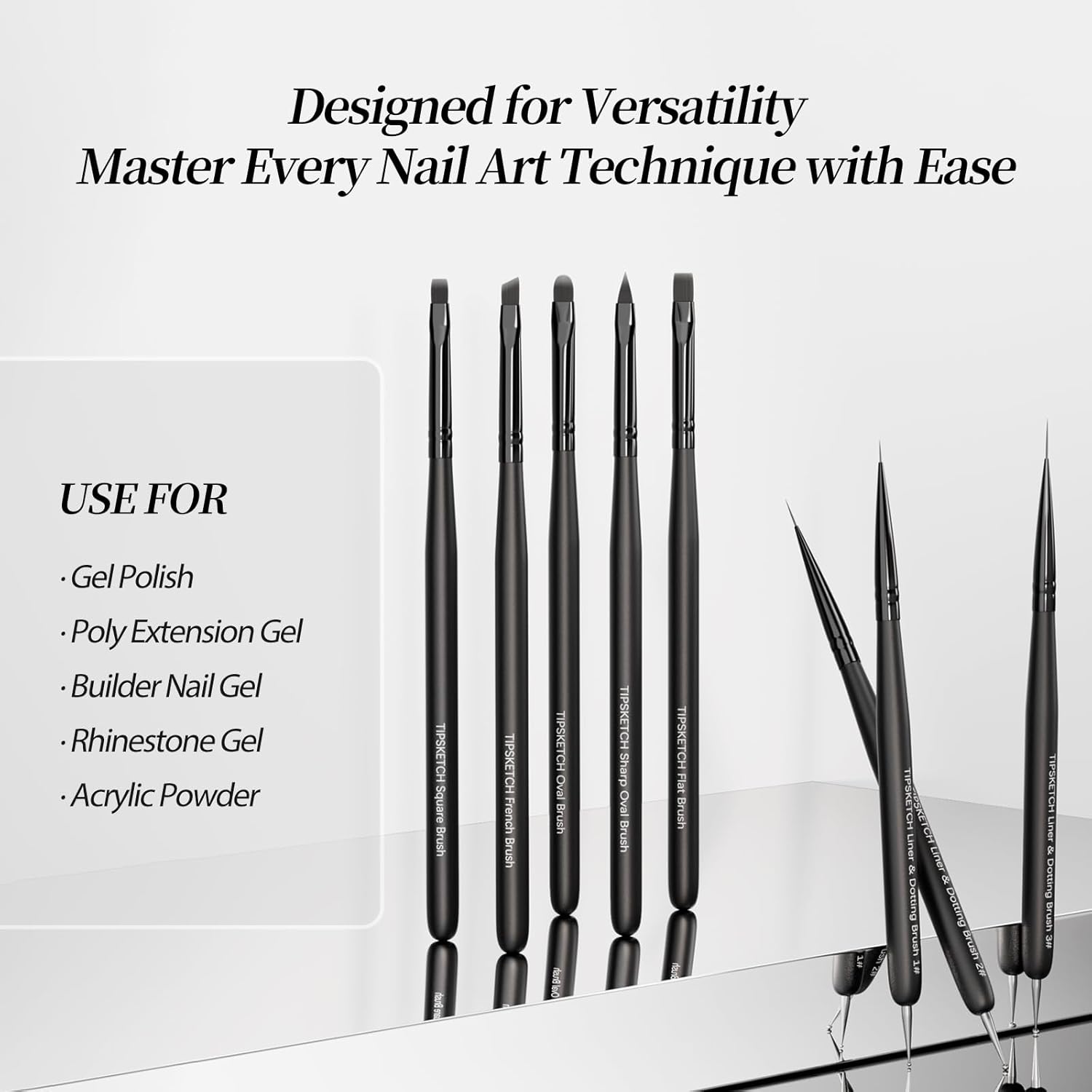 - 【Wide Range Use】Craft stunning nail art with Tipsketch's diverse brush set, perfect for 3D effects, UV gel, French tips, extensions, florals, and gradients.