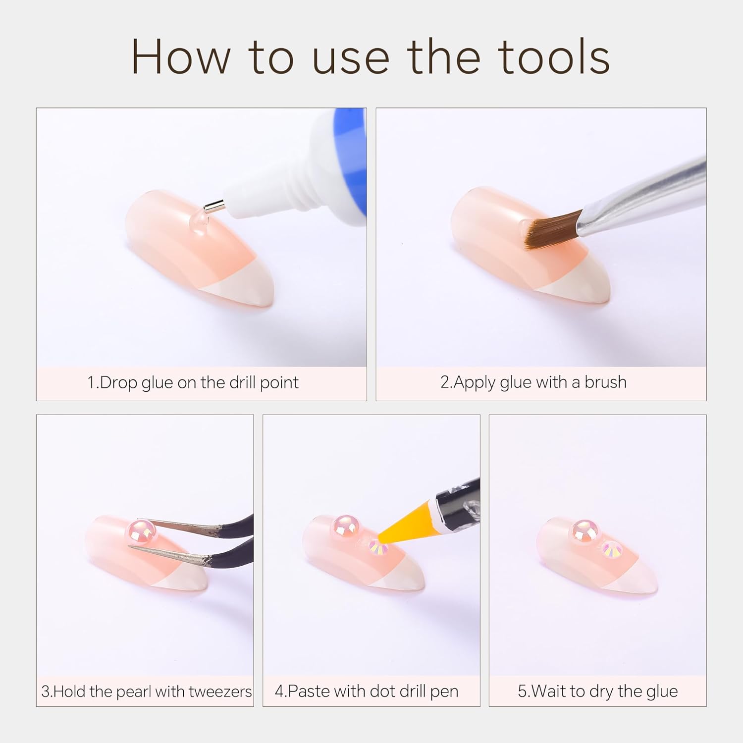 - Useful tools - These pearls and rhinestones have a flat back, which is excellent for easy placement.and you can pick up any large or small pearls and rhinestones with the crayons we bring along. And use the brush to smooth out the Gel, these tools will work very well