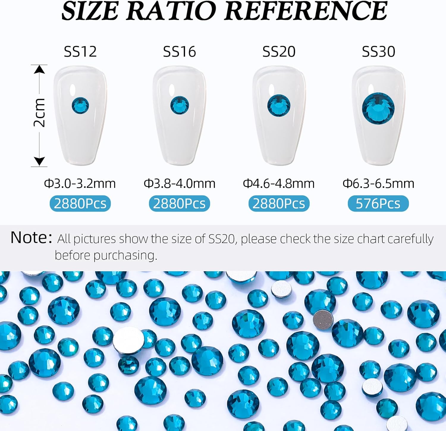 Malachite Blue Flatback Rhinestones, Glass Rhinestones for Nail Art and Craft, Glue Fix, Loose Crystal Gemstones(Malachite Blue, SS16, 2880pcs, 3.8-4.0mm)