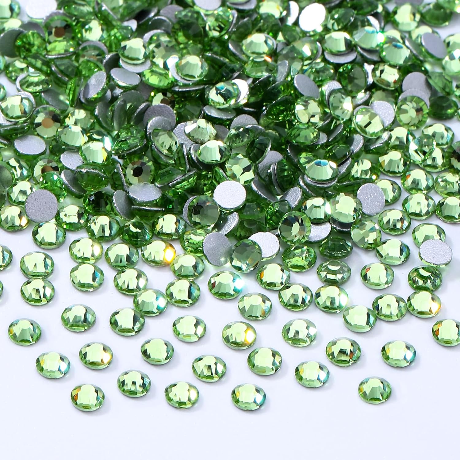 Light Green Flatback Rhinestones, Glass Rhinestones for Nail Art and Craft, Glue Fix, Loose Crystal Gemstones(Lt.Green, SS6, 2880pcs, 1.9-2.0mm)