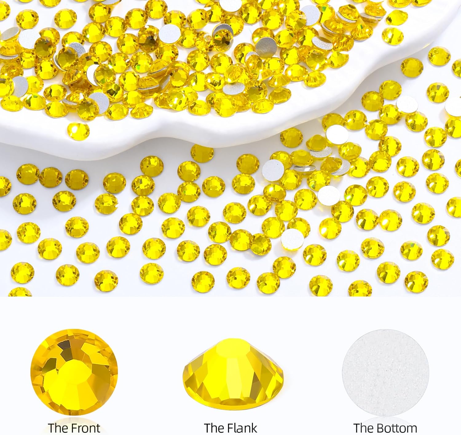 Yellow Flatback Rhinestones, Glass Rhinestones for Nail Art and Craft, Glue Fix, Loose Crystal Gemstones(Yellow, SS4, 2880pcs, 1.5-1.7mm)