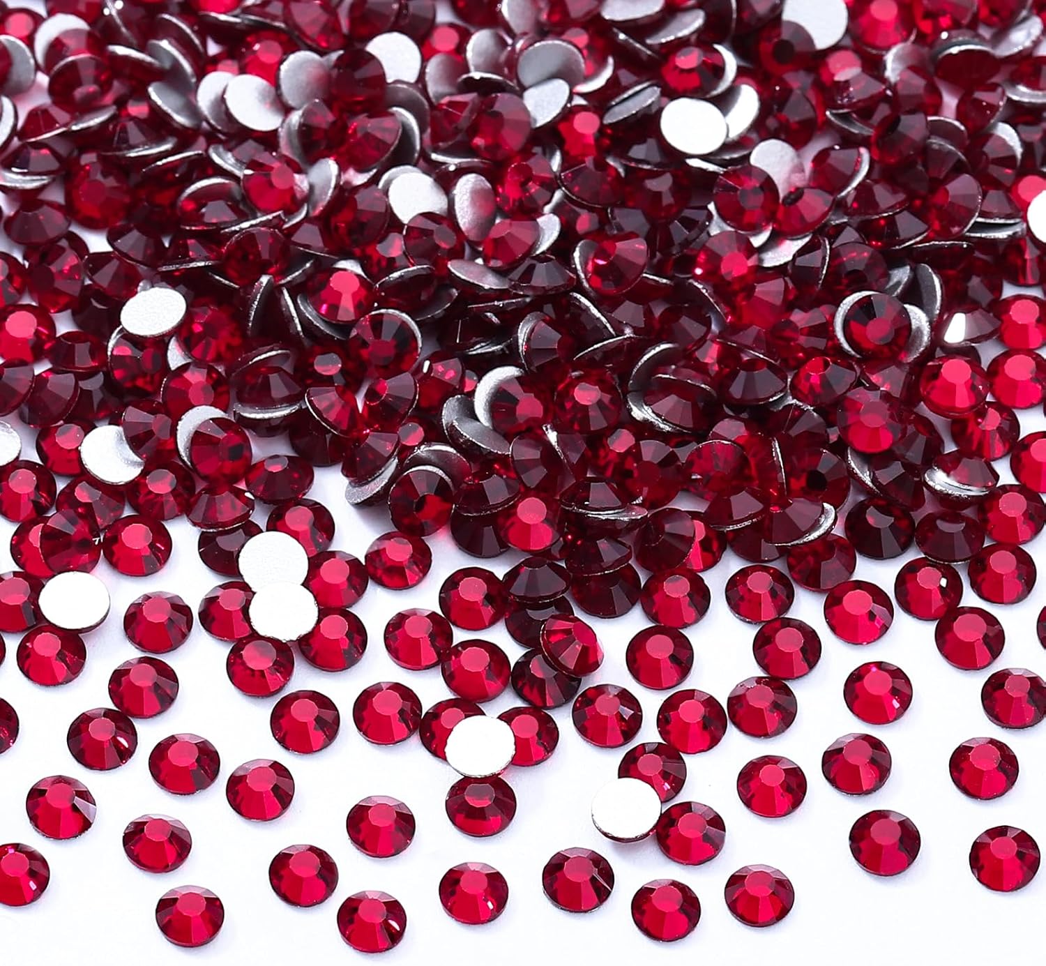 Siam Flatback Rhinestones, Glass Rhinestones for Nail Art and Craft, Glue Fix, Loose Crystal Gemstones(Siam, SS6, 2880pcs, 1.9-2.0mm)