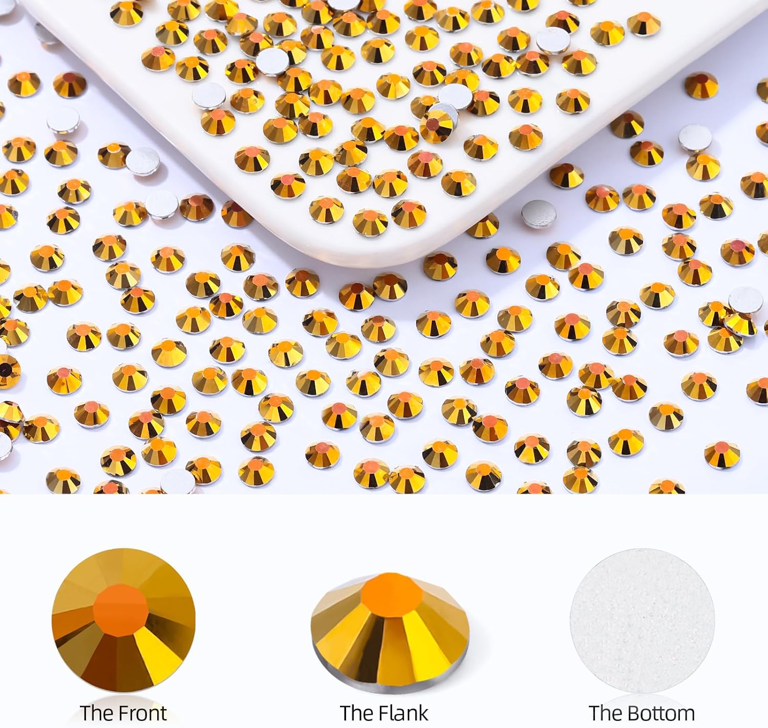Gold Flatback Rhinestones, Glass Rhinestones for Nail Art and Craft, Glue Fix, Loose Crystal Gemstones(Gold, SS16, 2880pcs, 3.8-4.0mm)