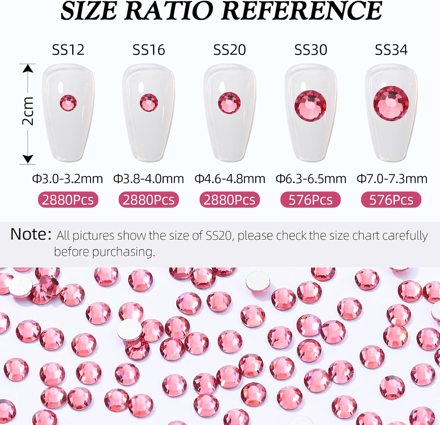 Rose Flatback Rhinestones, Glass Rhinestones for Nail Art and Craft, Glue Fix, Loose Crystal Gemstones(Rose, SS12, 2880pcs, 2.9-3.0mm)