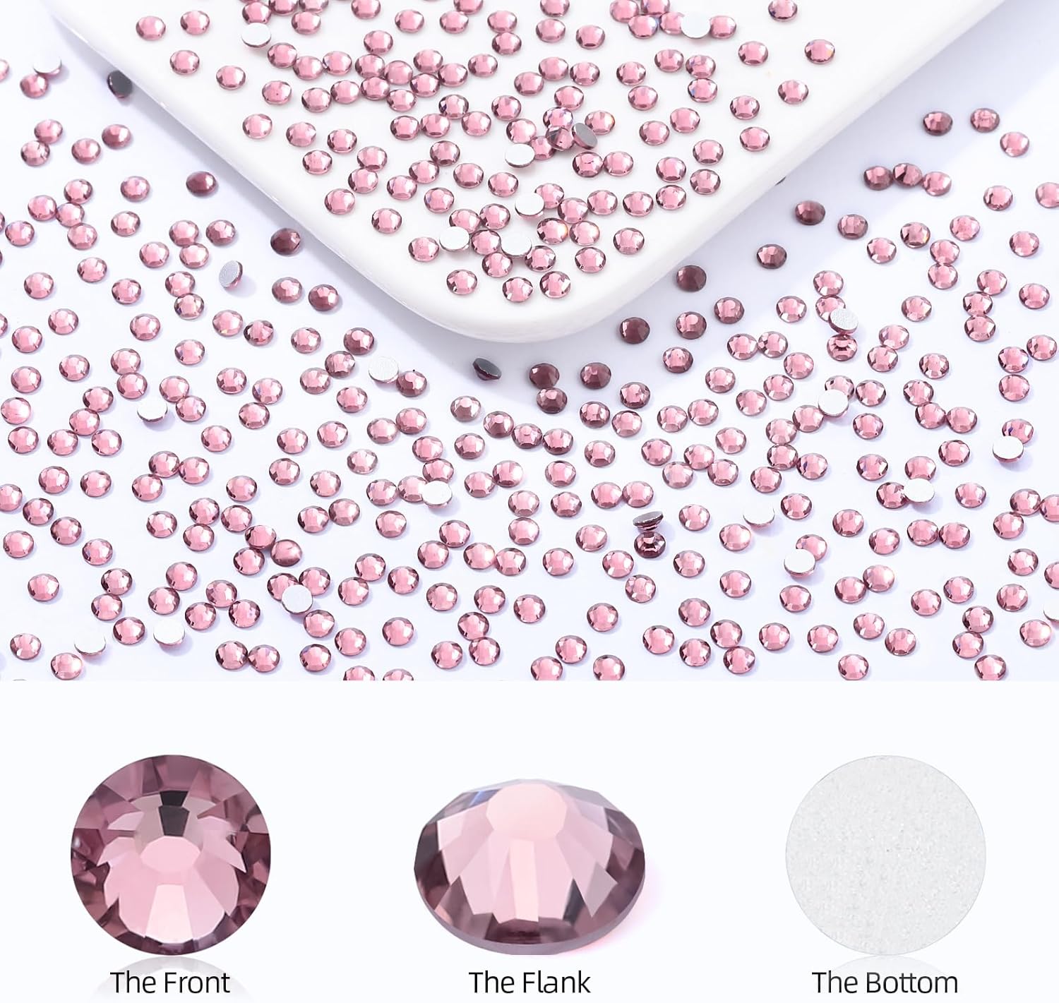 Light Amethyst Flatback Rhinestones, Glass Rhinestones for Nail Art and Craft, Glue Fix, Loose Crystal Gemstones(Lt.Amethyst, SS4, 2880pcs, 1.5-1.7mm)