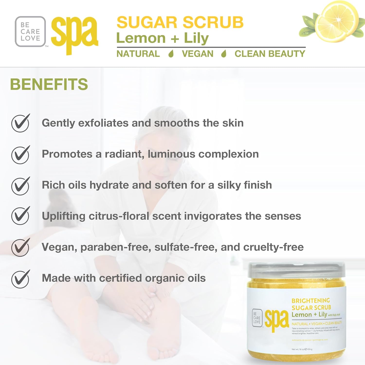 BCL SPA Sugar Scrub for Deep Hydration & Exfoliation with Certified Organic Ingredients for Professional and Home Use (16 oz, Lemon and Lily)