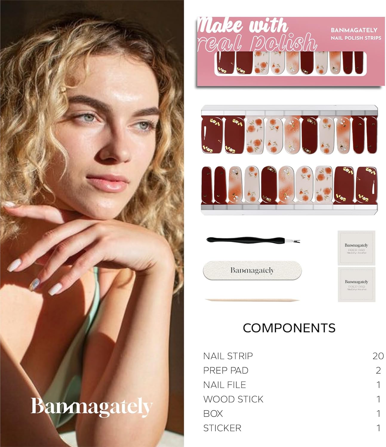 Nail Polish Strips, 20Pcs Salon Quality Gel Nail Stickers, Easy Long Lasting Wraps for Short Nails no UV Light Needed (Beautiful Roses)
