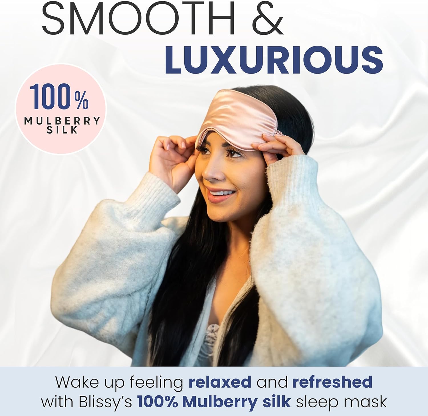 - TOTAL BLACKOUT - If you're looking to completely block out the light, our Blissy Silk Sleep Mask is perfect for you! Made with 100% pure Mulberry silk and 22 momme 6A grade fibers, this mask will keep the light out and help you get a good night's sleep.