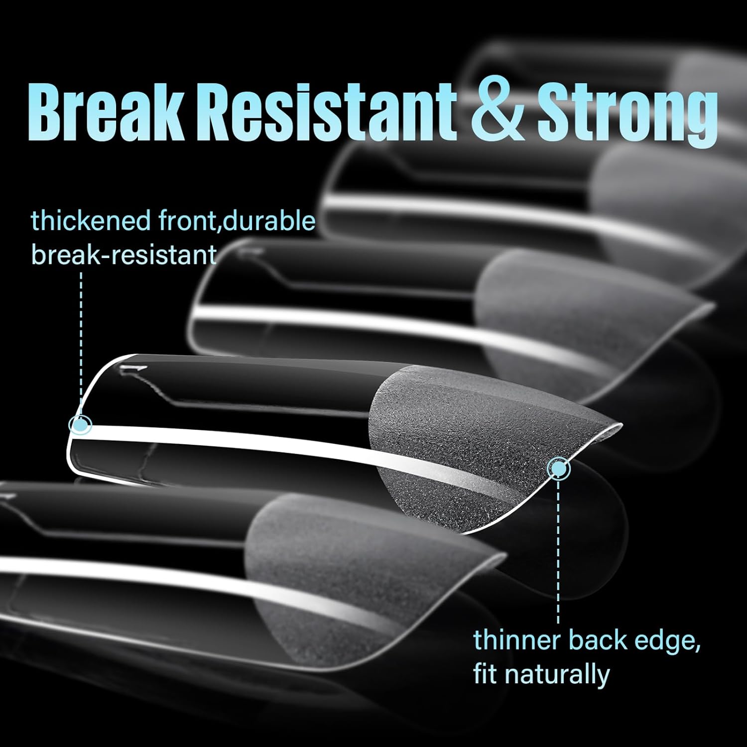 - 【Non Marking Soft Acrylic Nail Tips】TOMICCA nail tips is made of Soft Acrylic material, which has strong toughness and ductility and is not easy to break, The non marking design also makes the nail color more symmetrical, which can DIY your ideal nail effect. Soft Acrylic full cover nails can be used together with nail polish,dipping powder, etc, to make your life more colorful.