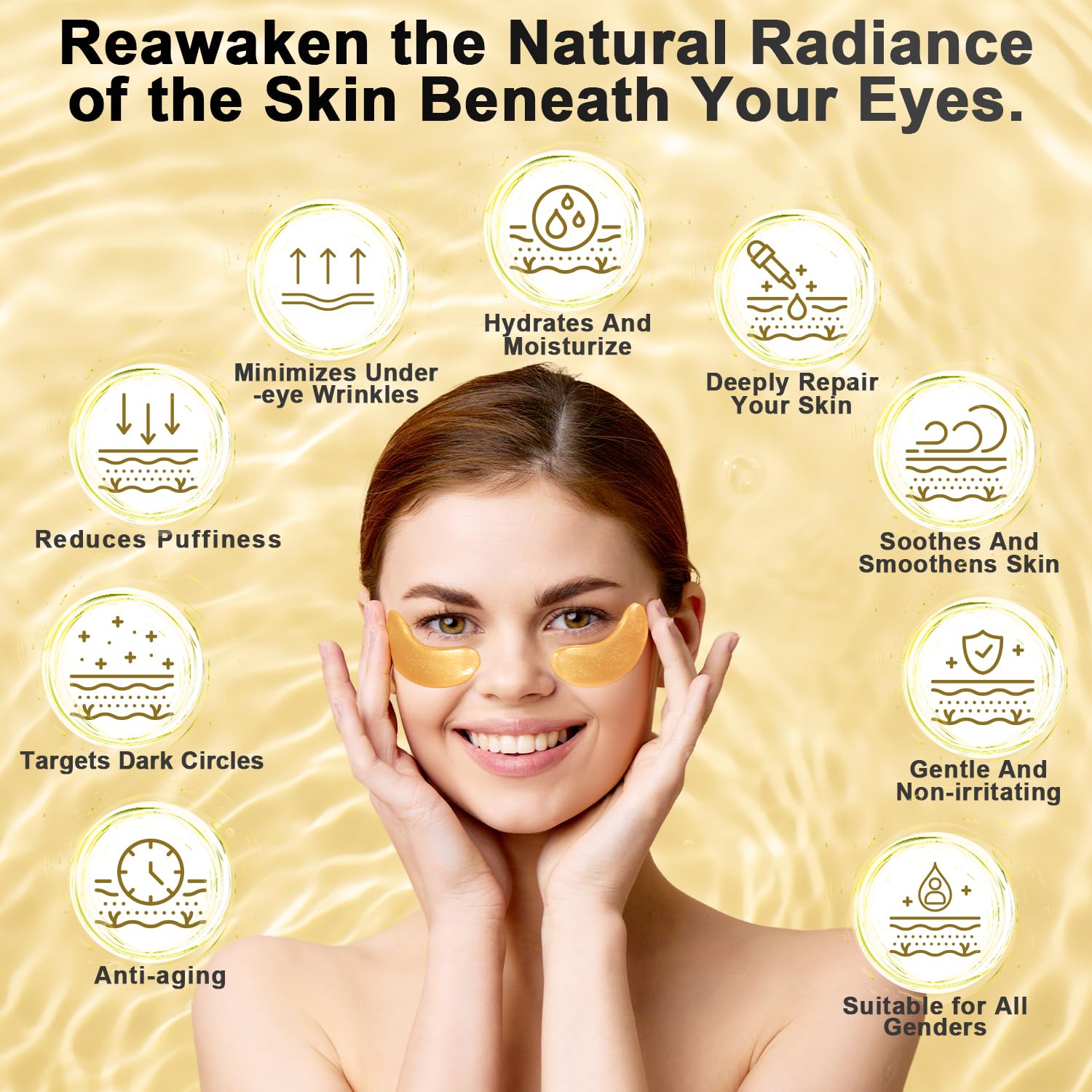 - Experience Luxury, Embrace Radiance: Unveil brighter, smoother, and more radiant eyes with our 24K Gold Under Eye Patches. Say farewell to tired-looking eyes and embrace a refreshed and rejuvenated appearance.