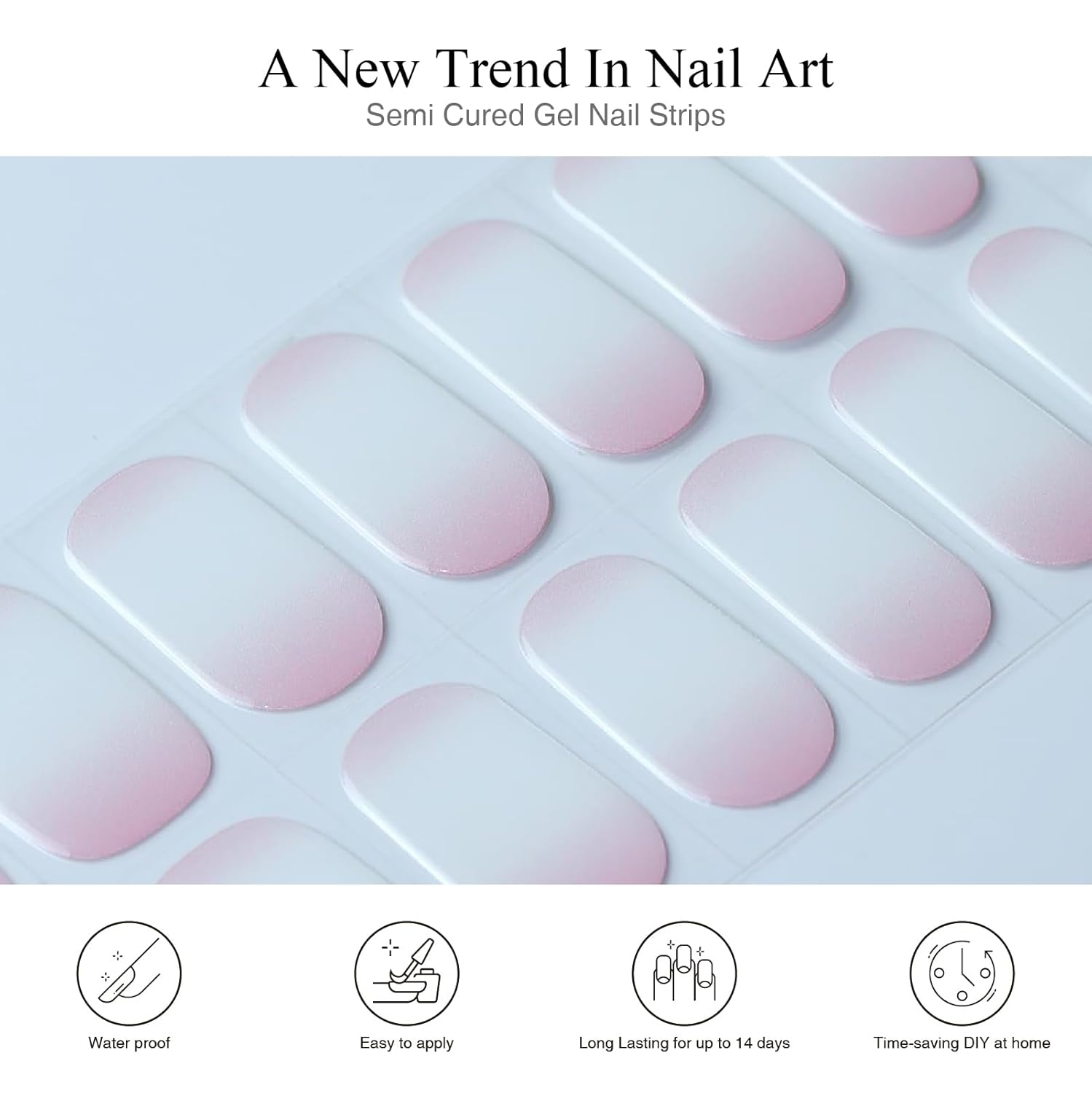 - REAL GEL NAIL STRIPS SET: Our nails strips are made with real gel, which means they are only 60 percent cured so they remain stretchy and flexible for application.Unlike flimsy nail stickers, these strips are supposed to feel like and last as long as a gel manicure.You don't get manicures anymore thanks to these semi cure gel nail strips that keep your nails damage-free