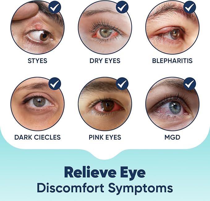- [Relieve Eye Discomfort Symptoms] After using this heated eye mask, you can feel consistent and complete relaxation. It can help relieve Styes, Dry Eyes, Blepharitis , Dark Circles, Pink Eyes and other eye discomfort symptoms.